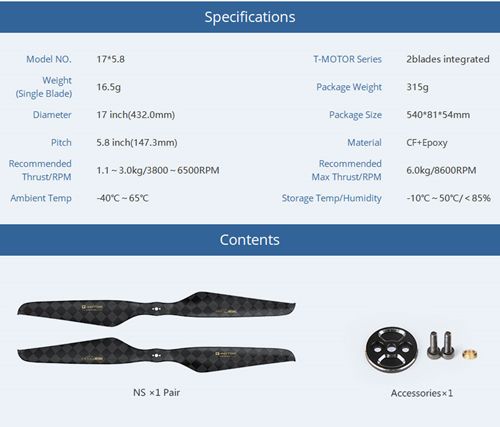 1Pairs T-motor NS17x5.8 Prop Multirotor Carbon Fiber 3rd Gen NS Series Propellers