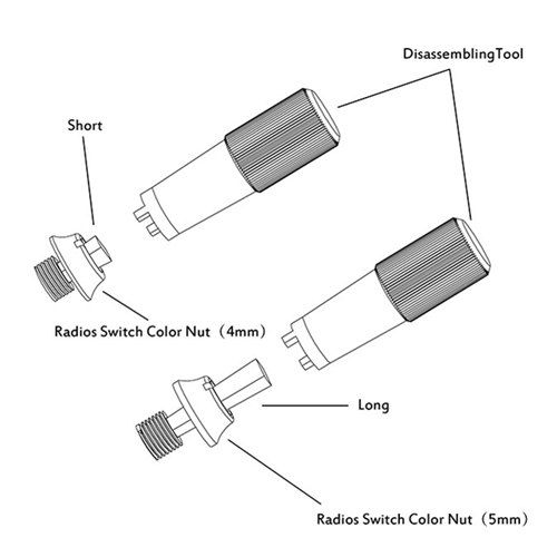 The long and short nuts correspond to the long handle switch and the short handle switch of the remote control respectively.