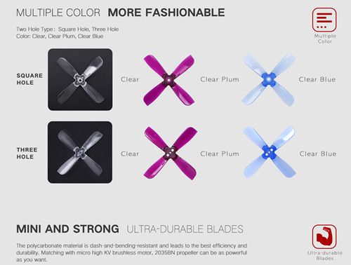Be the first to review “2 Pairs Gemfan 2035 2X3.5X4 4 Blade 1.5mm Mounting Hole CW CCW FPV Racing Propeller” Cancel reply