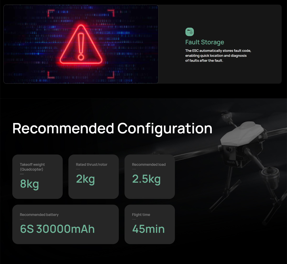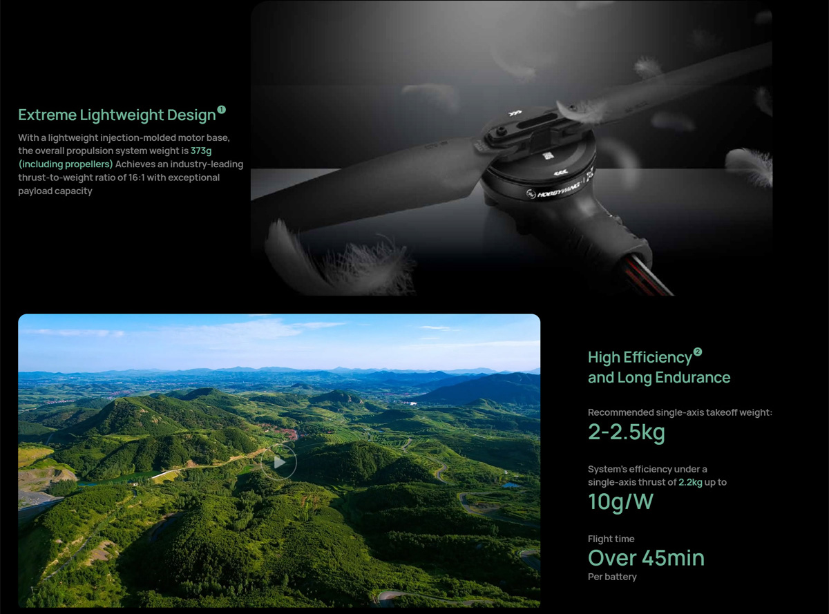 Recommended takeoff weight per axis:2.2kg