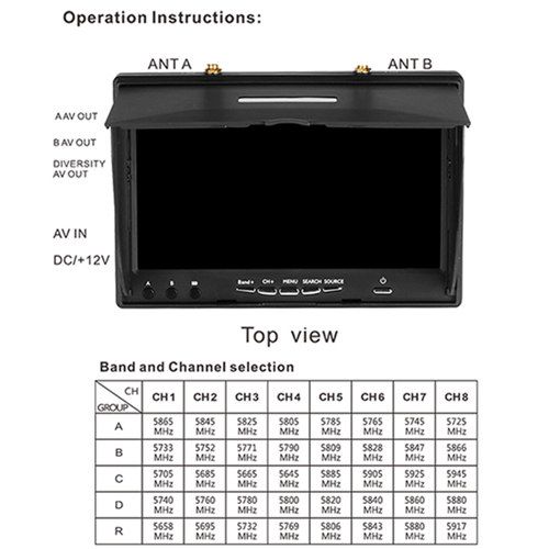 5.8G 40 Channel 7 inch FPV Diversity Monitor (Built-in battery) LCD5802D W/ DVR