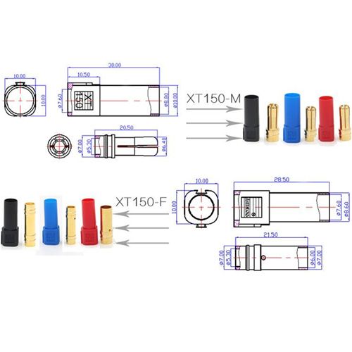 AMASS XT150 Connector Adapter Male Female Plug 6mm Gold Banana Bullet Plug