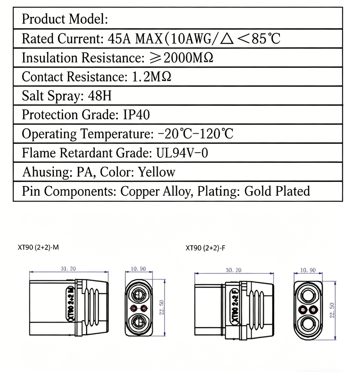 Model: XT90(2+2)-F/M
