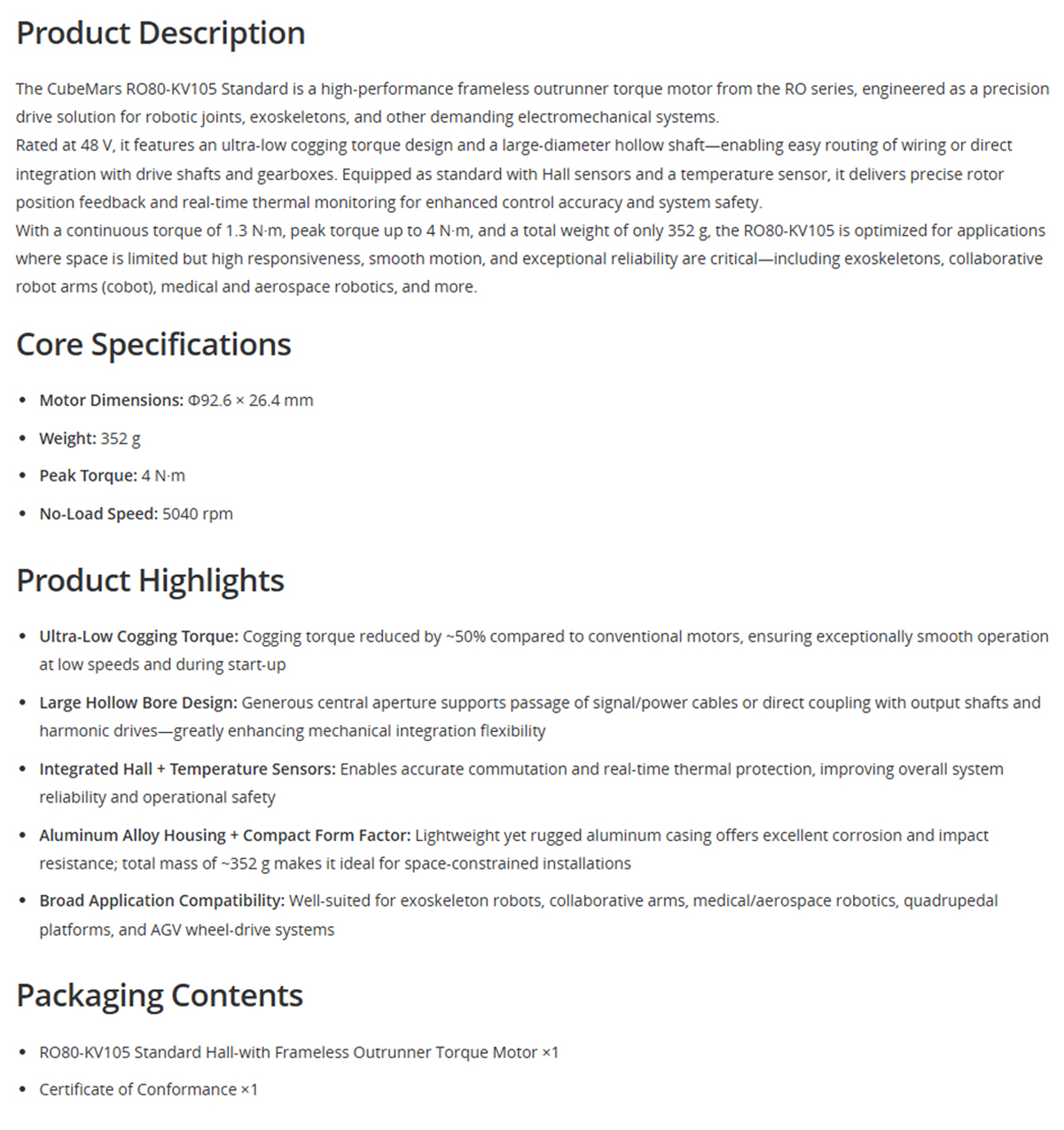 Model: RO80 KV105 Standard Version (With Hall Sensor)