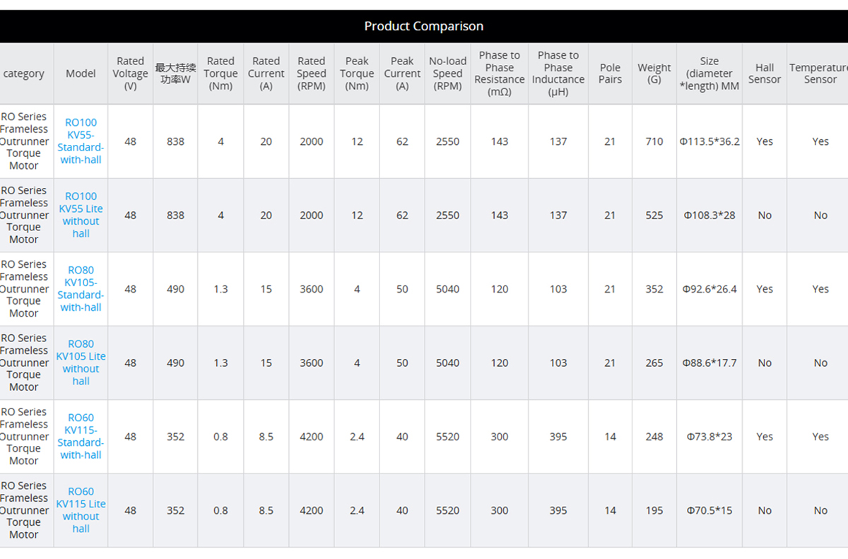 RO80‑KV105 Lite w/o Hall Frameless Outrunner Torque Motor x1