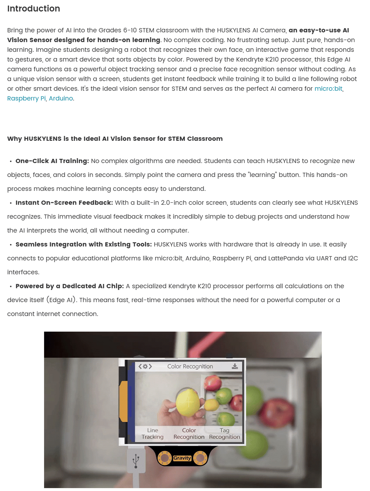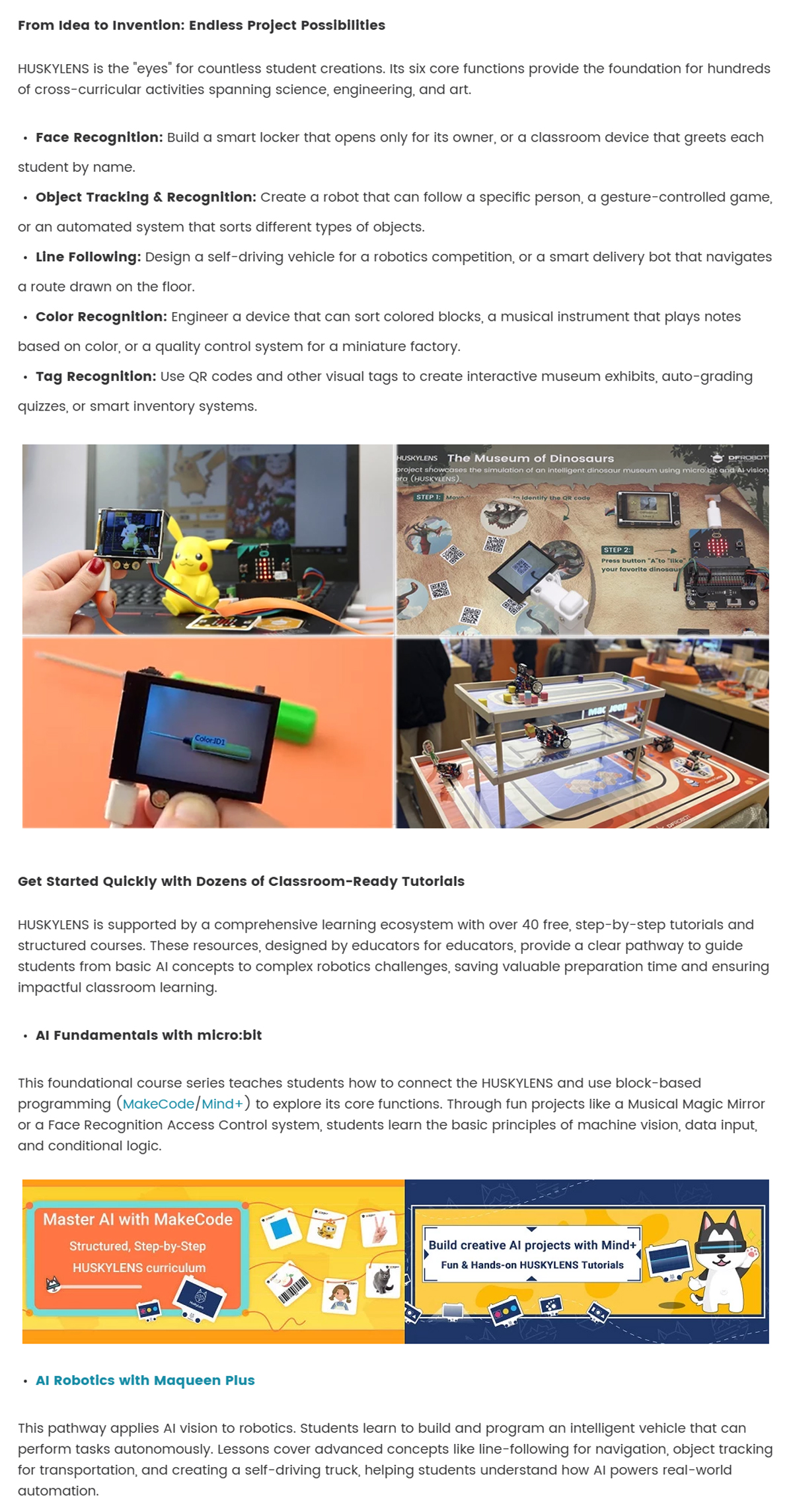 DFRobot Gravity HuskyLens K210 AI Camera No-Code Vision Sensor Face Color Recognition for STEM Arduino micro:bit
