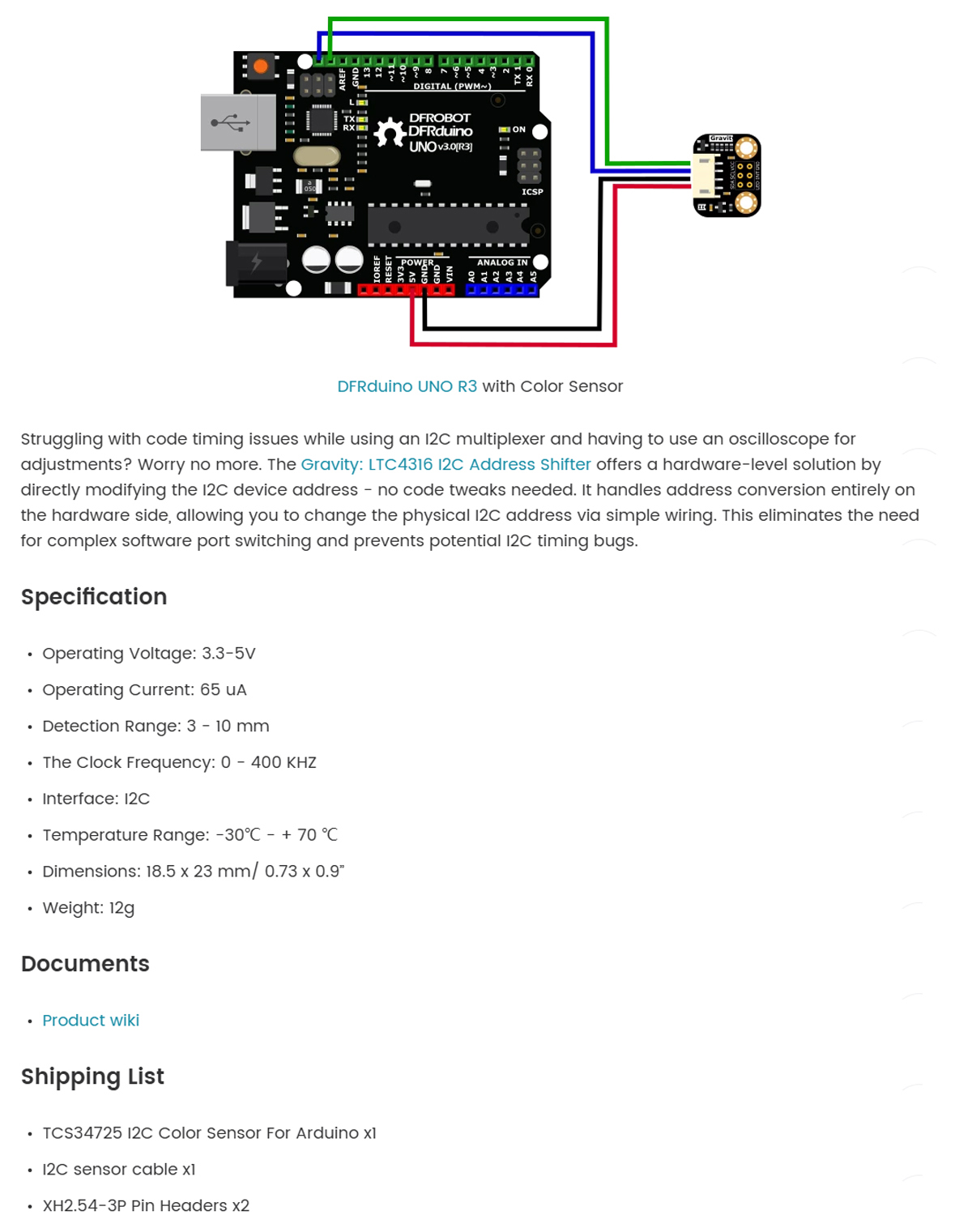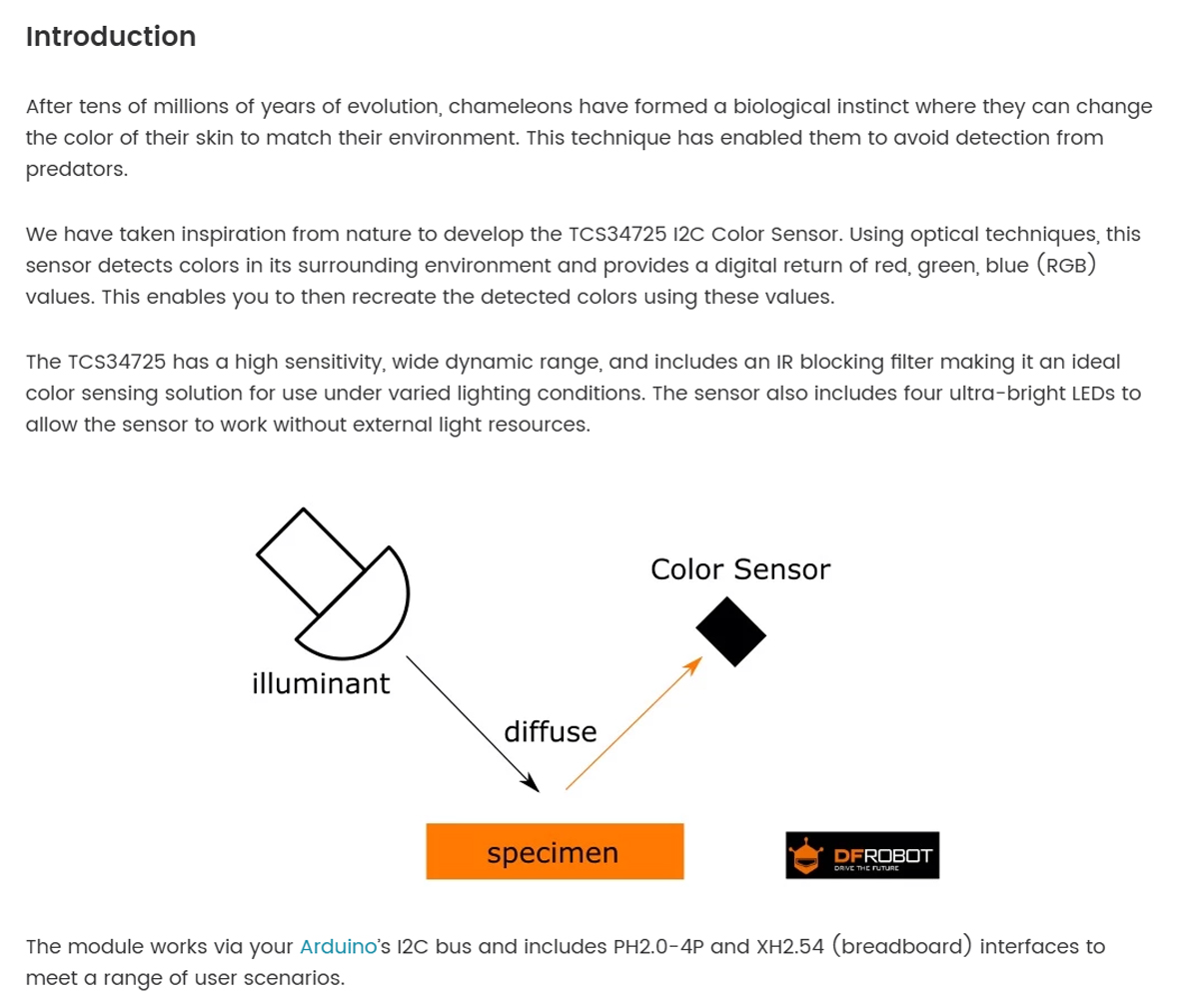 DFRobot Gravity TCS34725 RGB Color Sensor I2C Plug And Play High Sensitivity for Arduino Maker Education