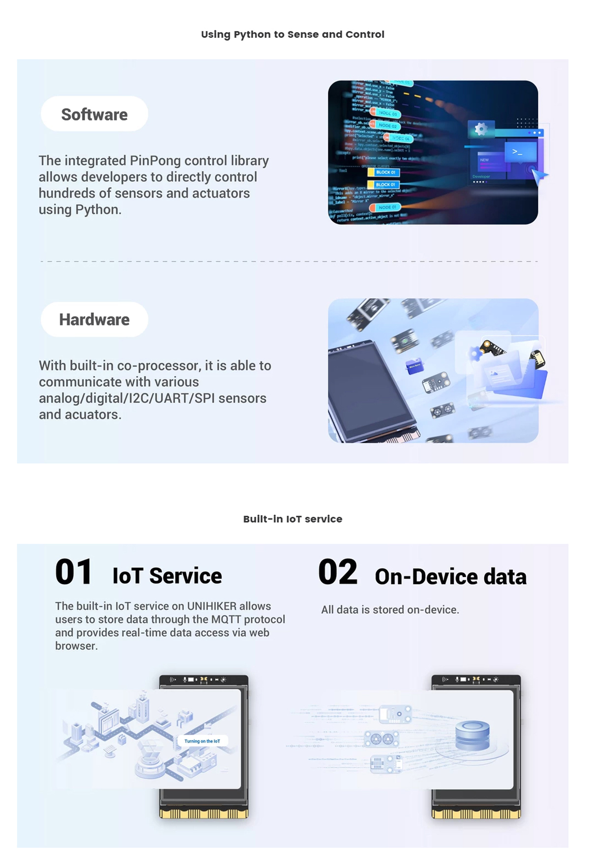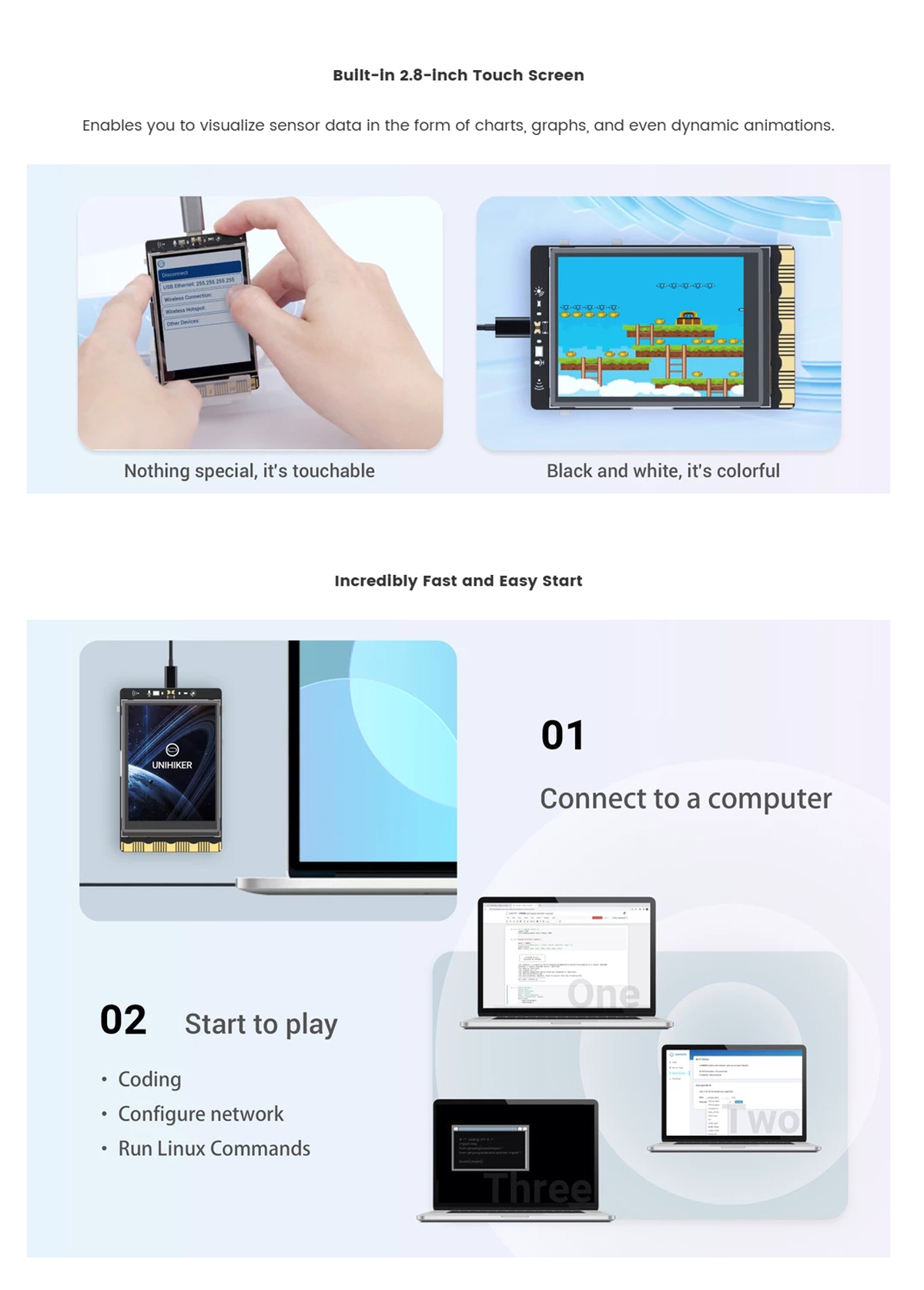 A single-board computer featuring a 2.8-inch touchscreen, sensors, built-in IoT, and Python programming support. Ideal for AIoT, STEM, and robotics projects.