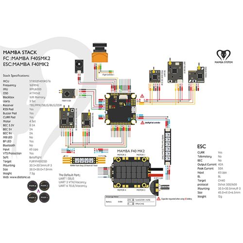 Diatone MAMBA F405 40A4in1 MK2 Flight Controller & 40A 3-6S DSHOT600 Brushless ESC For FPV Racing Drone RC Quadcopter RC Parts