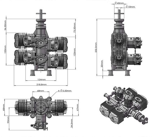 DLE120 T4 RC Airplane Gasoline Engine Power Four-Cylinder Two-Stroke Side Exhaust Natural Wind-Cooled 120CC Displacement