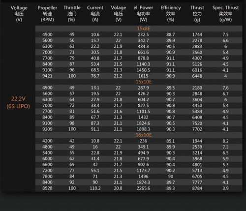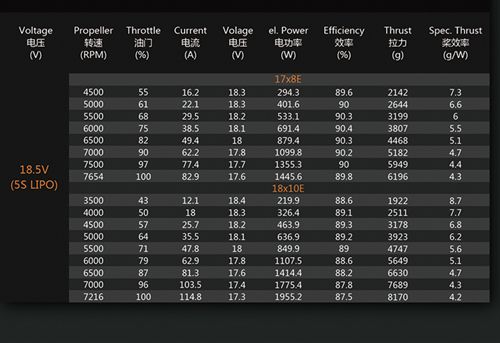 Propeller:5S(17x8E,18x10E);6S(15×8,16x10E)