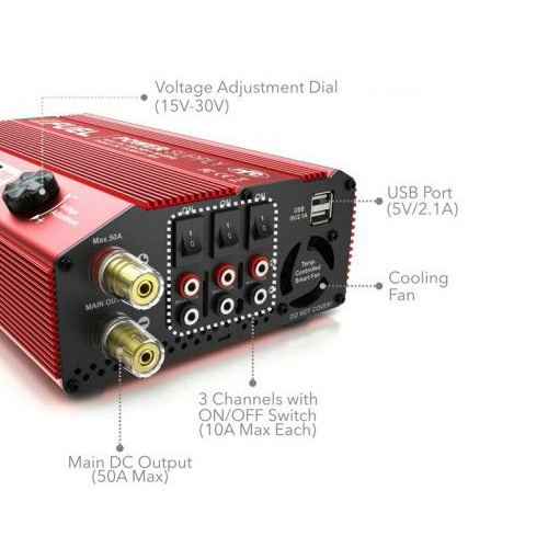 With 1200W outputs, adjustable output voltage from 15-30V and active PFC, it is the most advanced power supply you will find anywhere. 1200W of output is ideal for a variety of high powered chargers, and three outputs allows you to simultaneously operate multiple chargers or other devices.