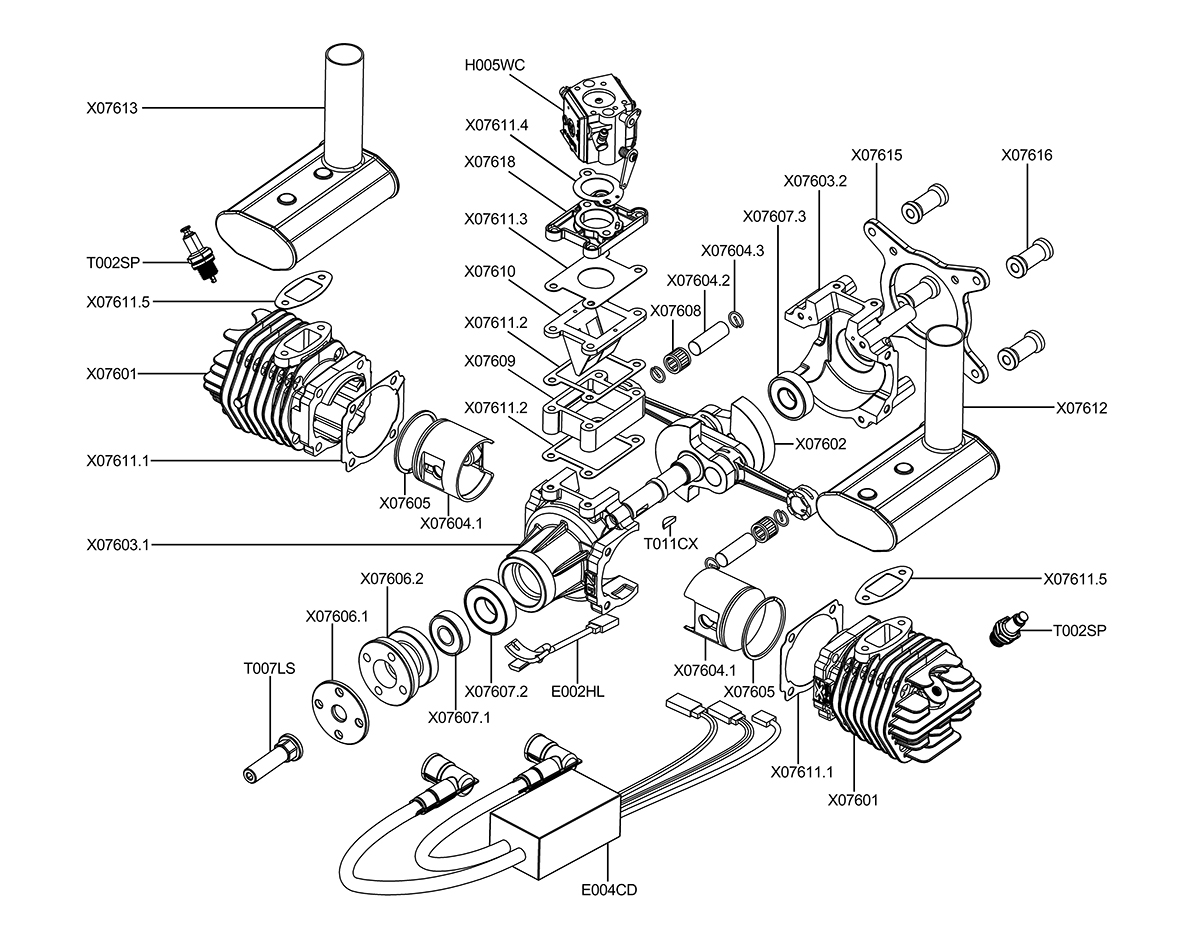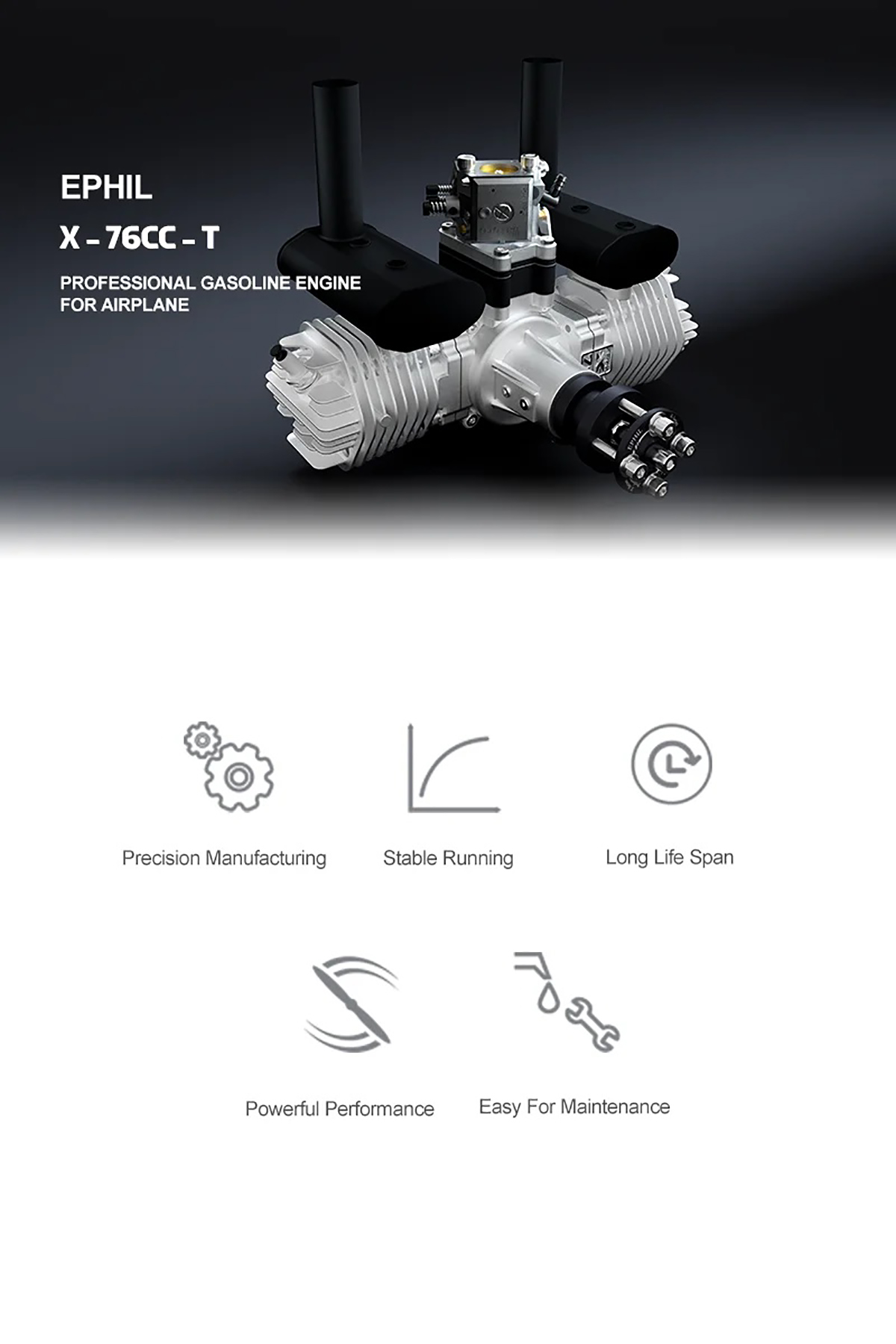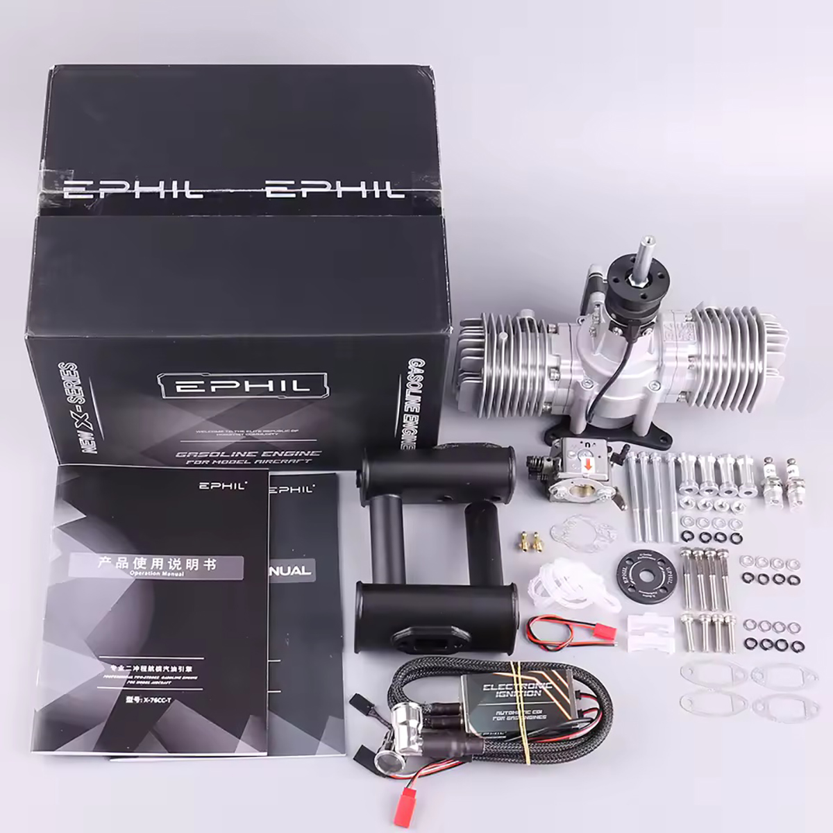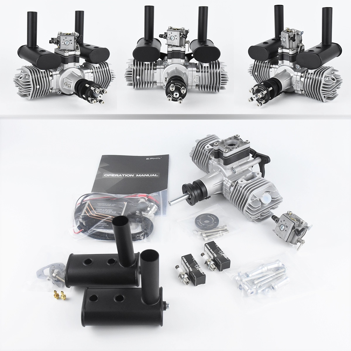 EPHIL X-76cc-T Gasoline Engine Opposed Twin Cylinder Two Stroke Large Displacement Engine for RC Airplane