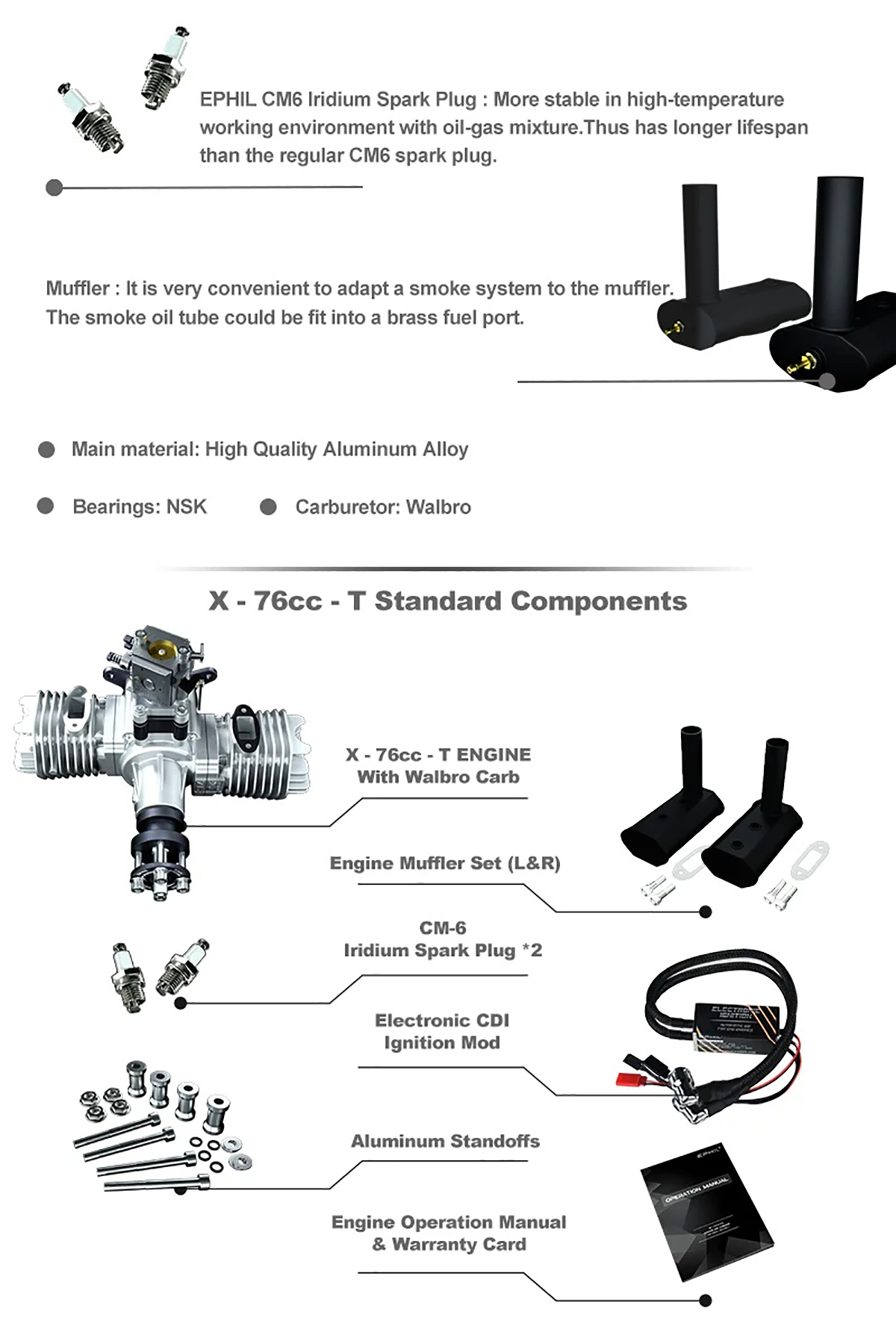 X-76cc-T Engine With Walbro Carb x1