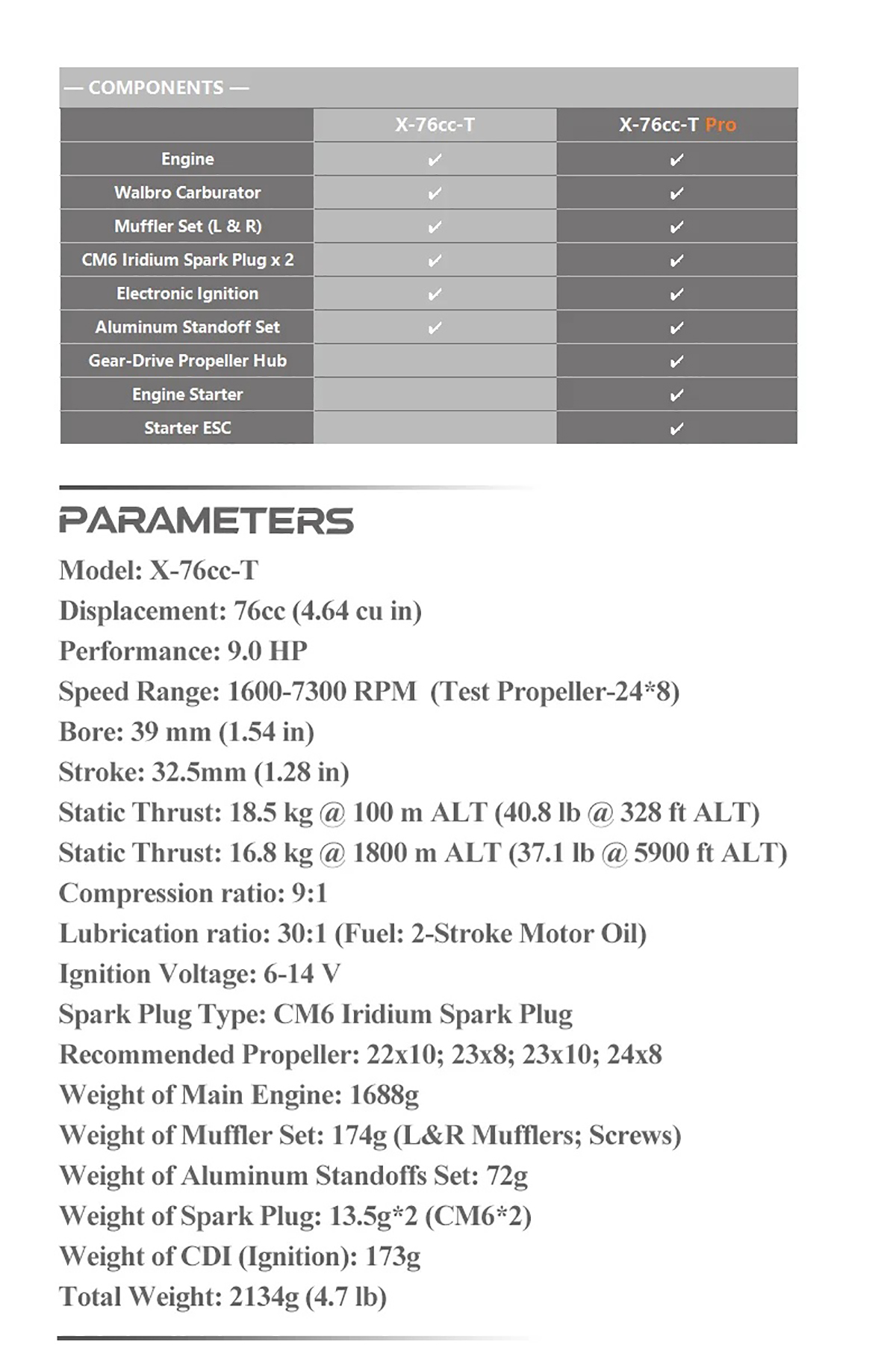 Recommended Propeller: 22×10; 23×8; 23×10; 24×8