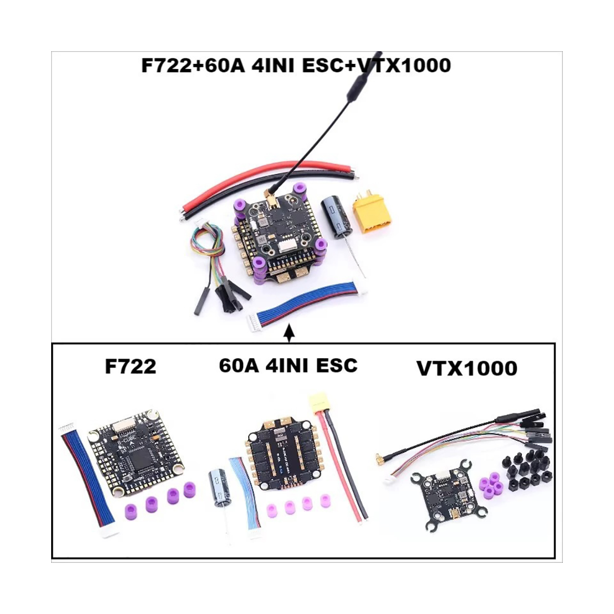 F722 F7 60A Stack F722 Flight Control 60A 4in1 ESC VTX1000 Video Betaflight Flight Controller
