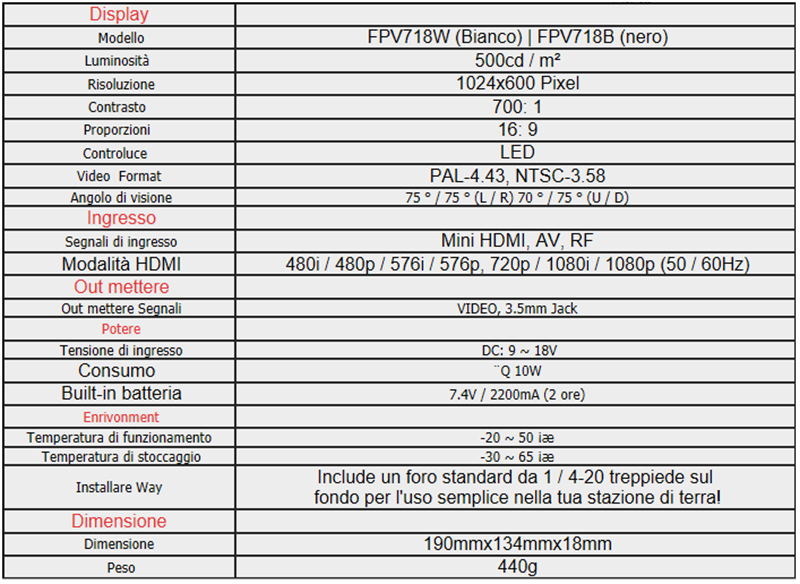 Batteria litio interna, ingressi posteriori, ingresso HDMI scansione automatica dei canale.
