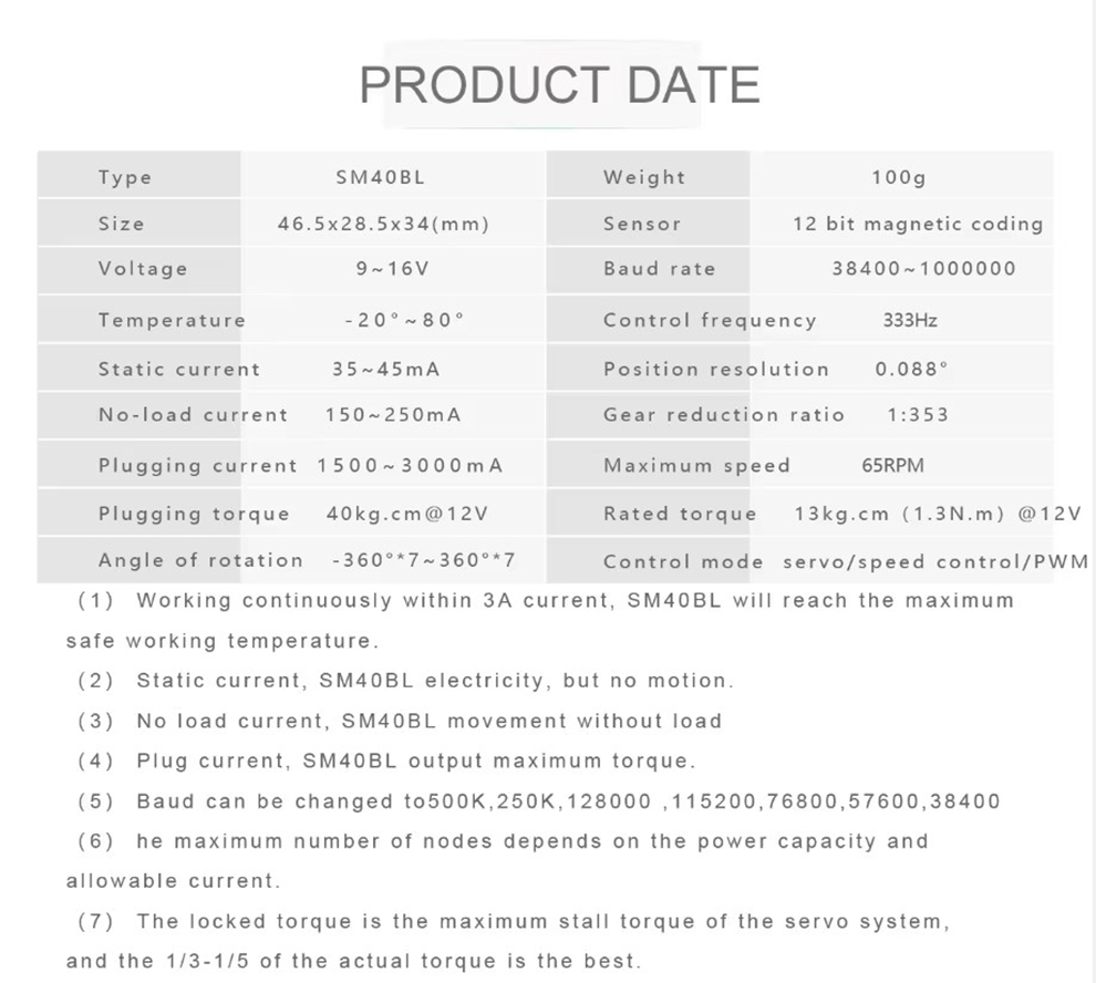 In motor mode, SM40BL can be used as DC motor, speed adjustable; in position control mode, 0-360 degrees and multi circle arbitrary absolute and relative angle can be controlled within this range with accurate position control performance, speed control.