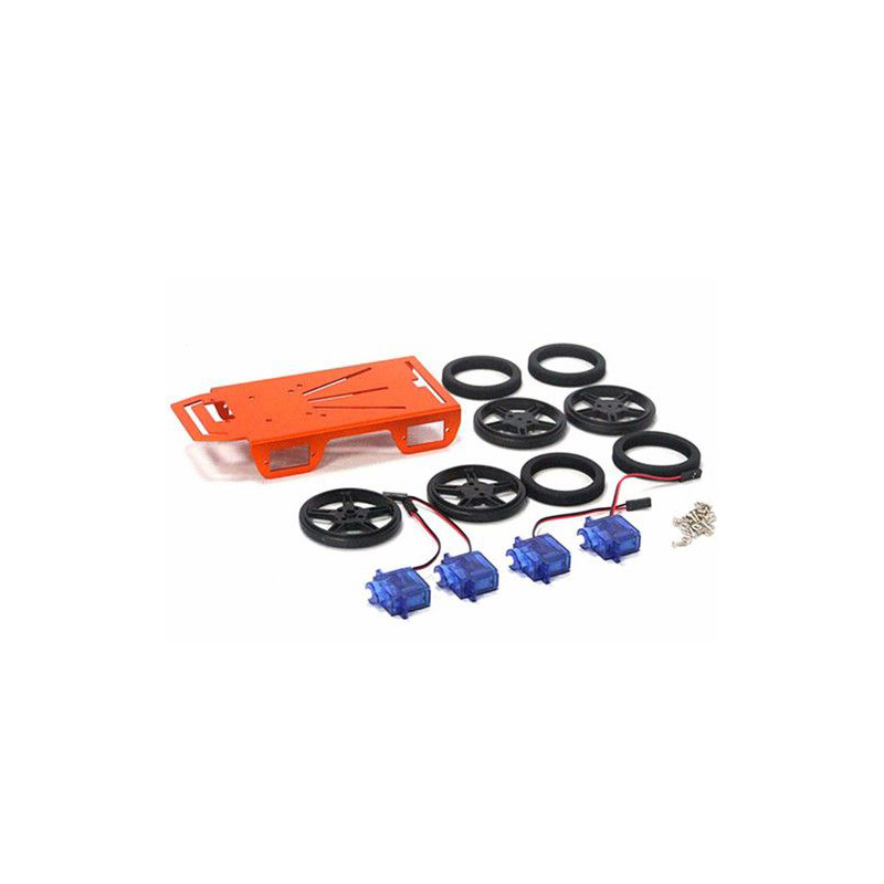 Mini Robot Mobile Platform uses 4DC motor gear box to drive. The spec the same as FS90R – – High speed up to 100RPM, 1.3kg.cm at 800mA.
