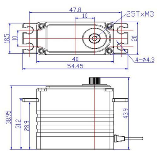 – Electronic protection: locked rotor for 3 seconds (after the steering gear is locked, the output torque will exceed the overload torque and continue to protect the torque after 3 seconds, the overload torque and protection time can be modified)