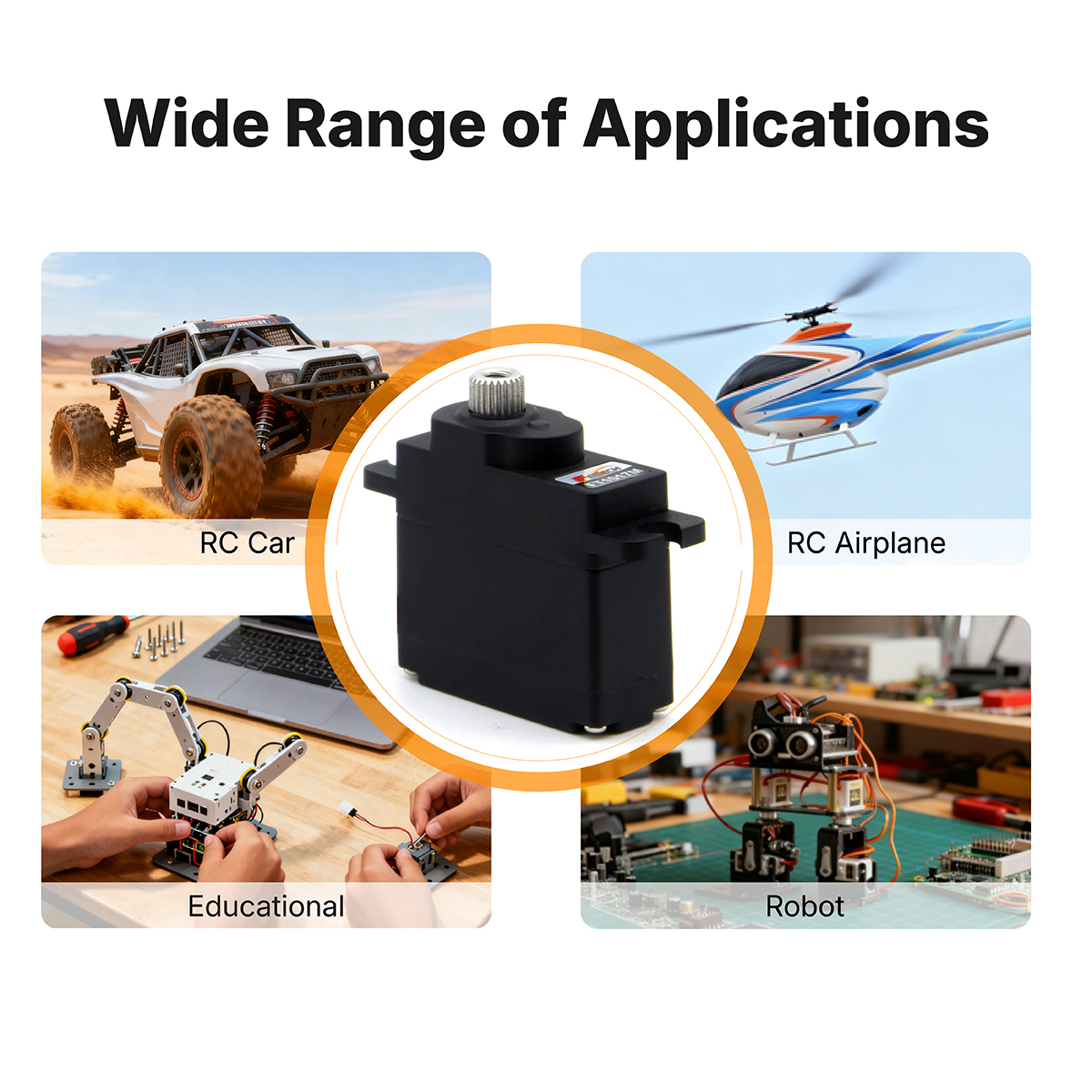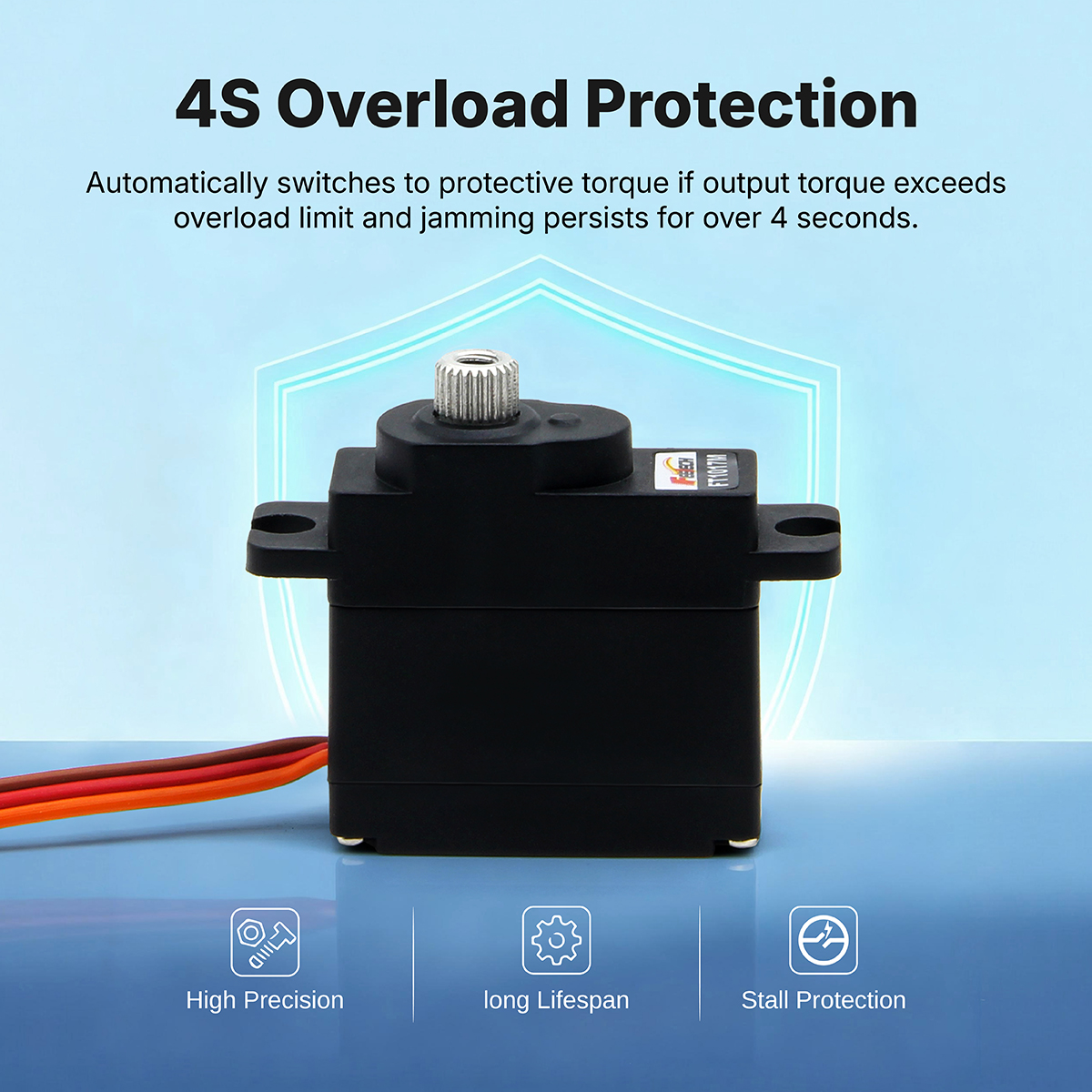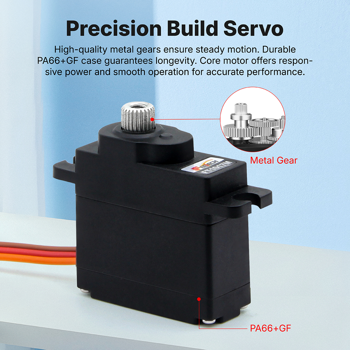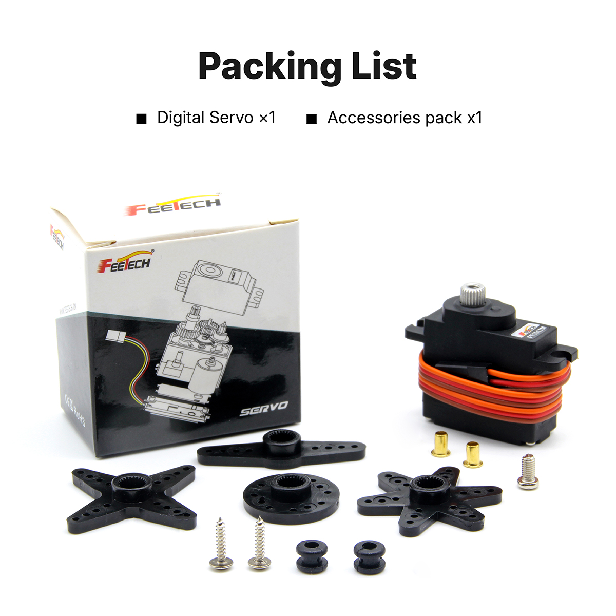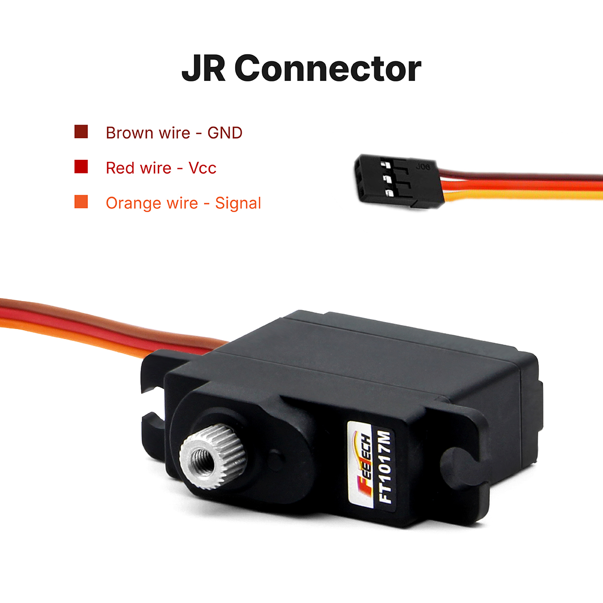 The Servo Motor FT1017M is a workhorse standard servo with a range of 180 degrees that can be used in many applications and is one of the best values for a general-purpose servo.