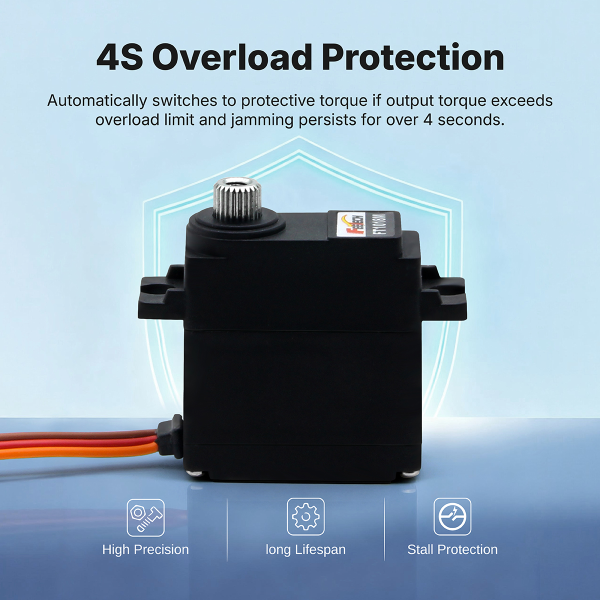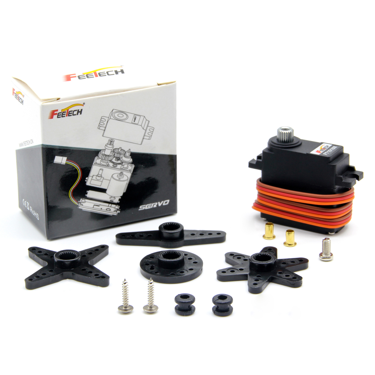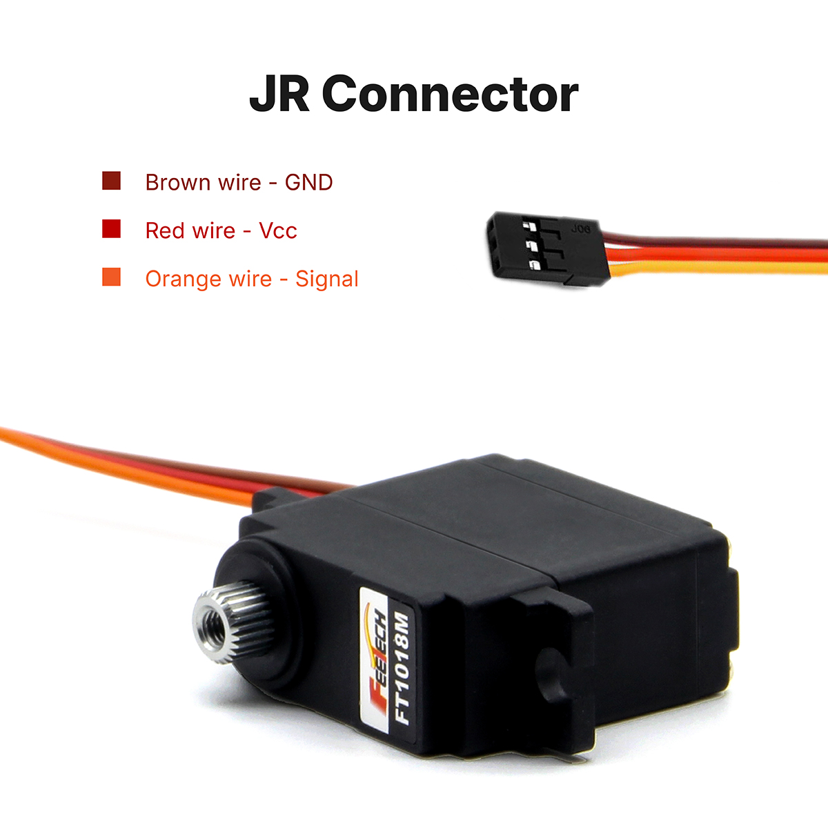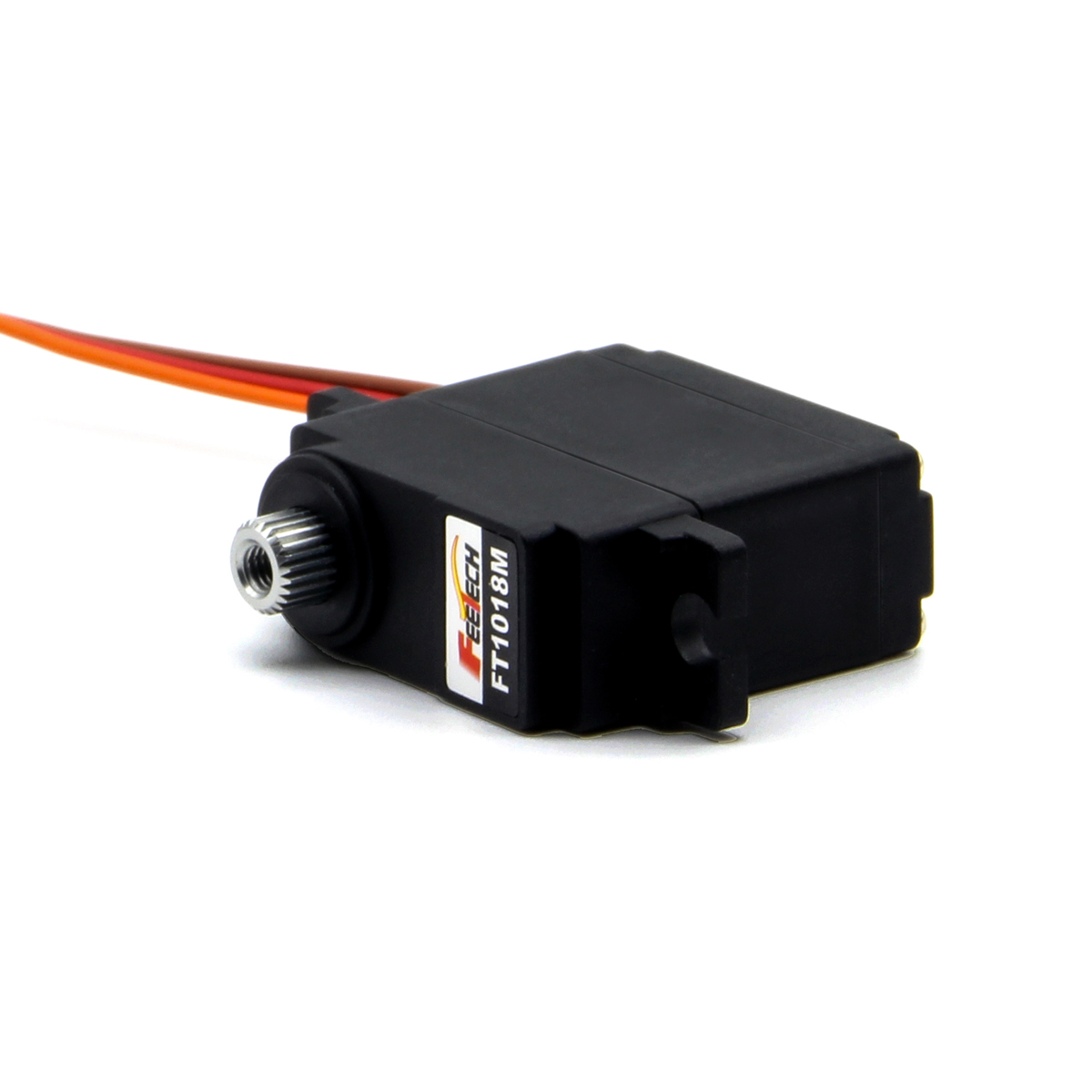 The Servo Motor FT1018M is a workhorse standard servo with a range of 180 degrees that can be used in many applications and is one of the best values for a general-purpose servo.