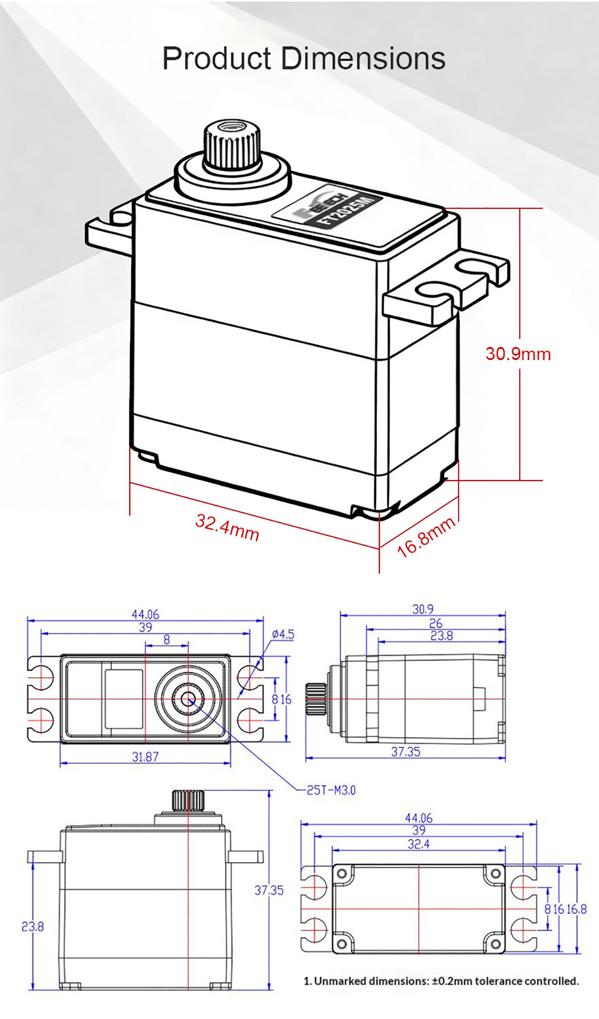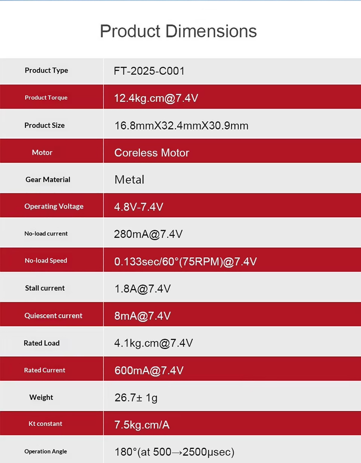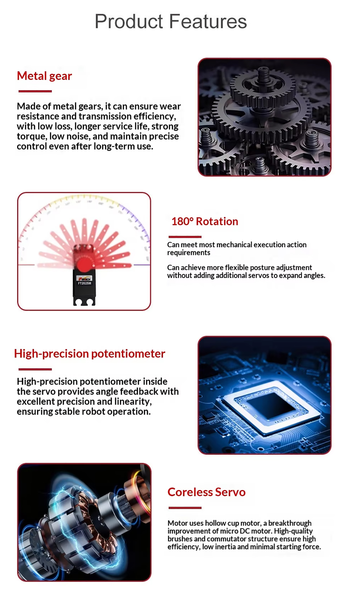 Feetech FT2025M 6V 10.5kg 180 Degree Metal Gear Coreless Motor Digital Servo for RC Car Educational Robot