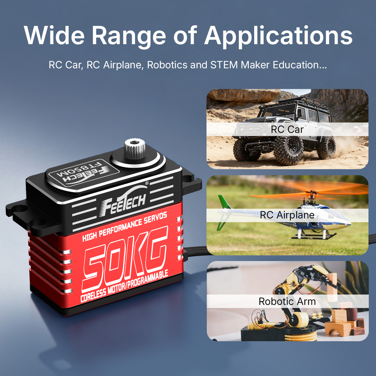 Feetech FT850M 7.4V 50kg Servo Celess Motor Steel Gear 180 Degree for RC Car Traxxas Power Truck Robot Scale Clawer Drone Accessories