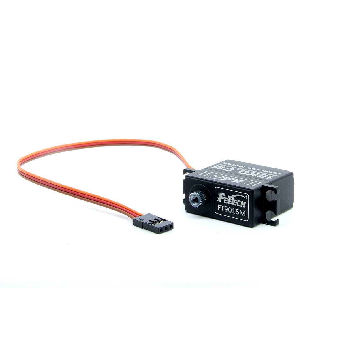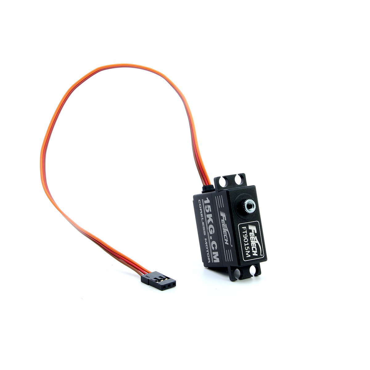 FT9015M is a Small body, big torque servo ! lightweight,smart but powerful!The low profile size is only 32X15X29.2mm; 7.4V 15kg.cm digital 180 degree aluminum shell metal gear coreless servo.