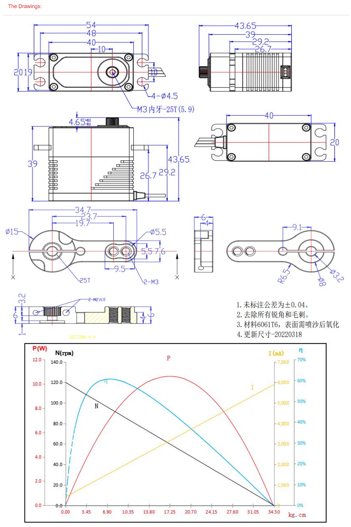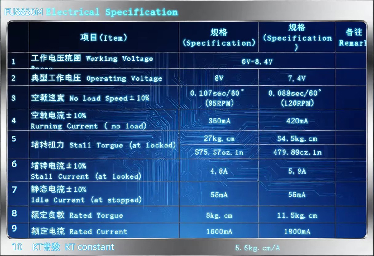 No load speed: 0.083sec/60°(120RPM)@7.4V