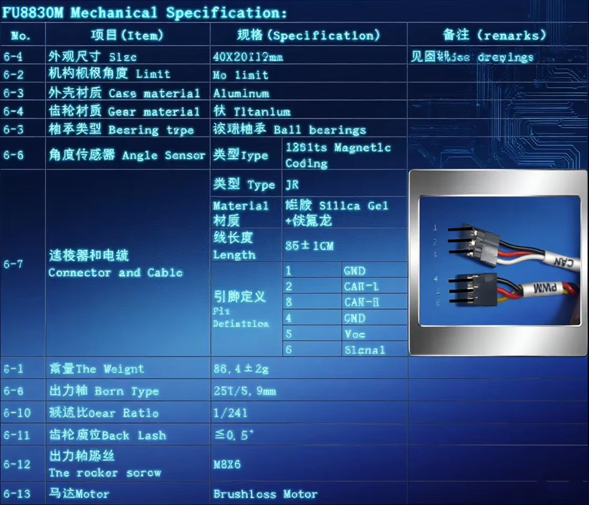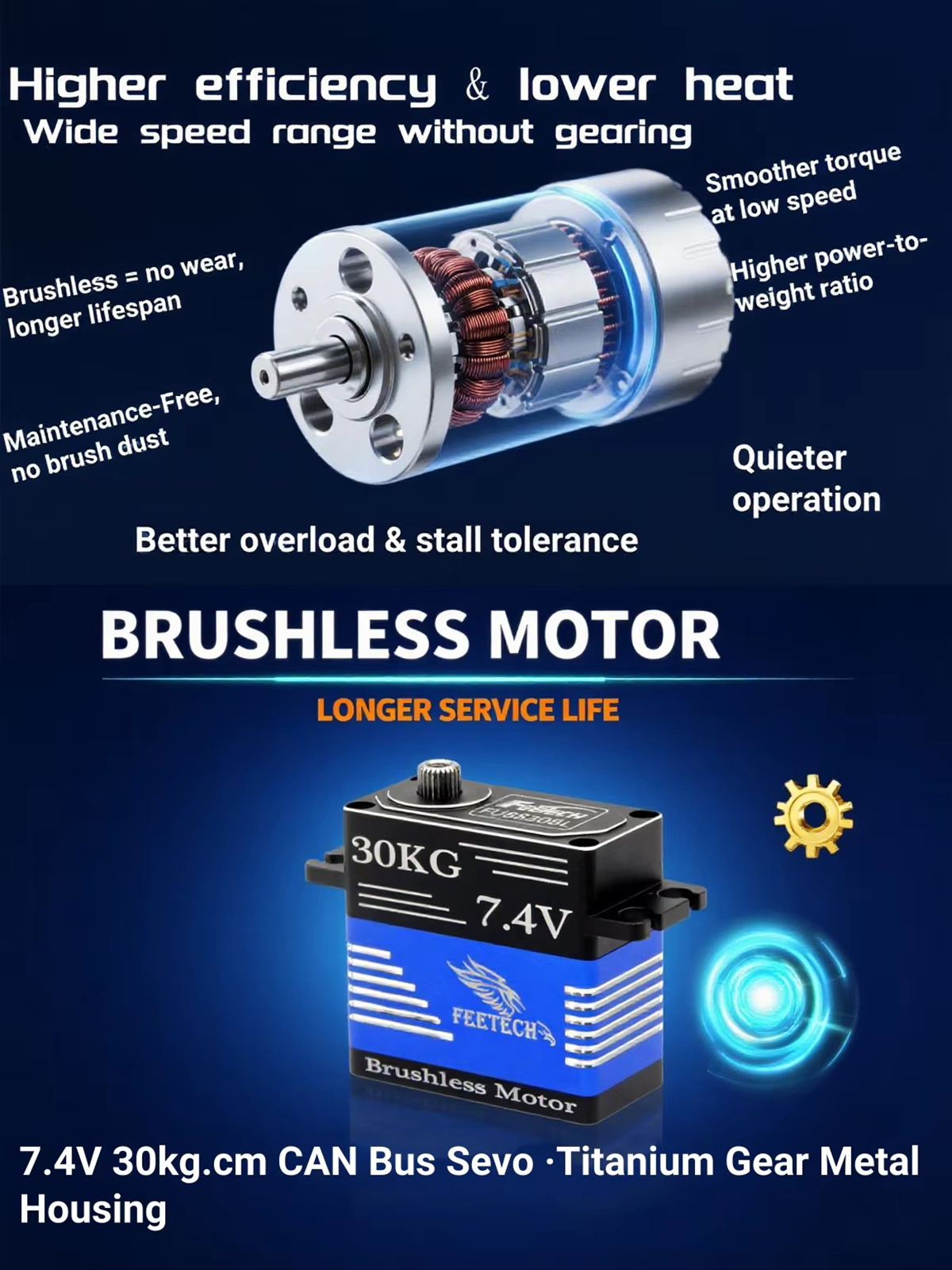 Feetech FU8830BL 7.4V 30kg 180 Degree CAN Bus Titanium Gear Metal Brushless Servo
