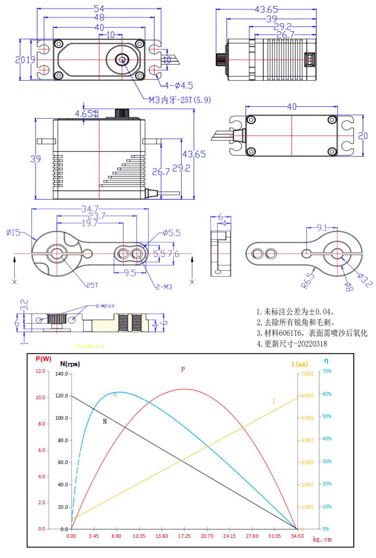 Peak stall torque: 34.5kg.cm@7.4V
