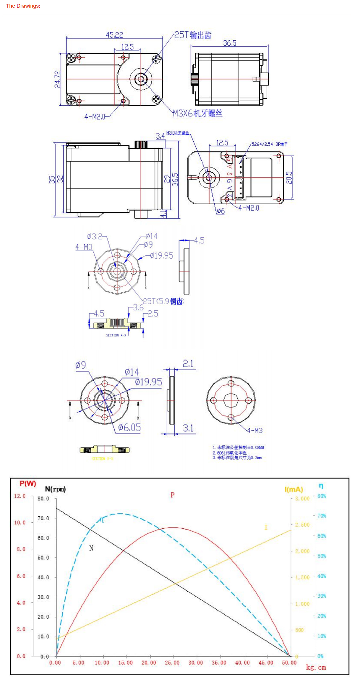 When the voltage is 12V, the stall torque can reach 50kg.cm, which can be used to