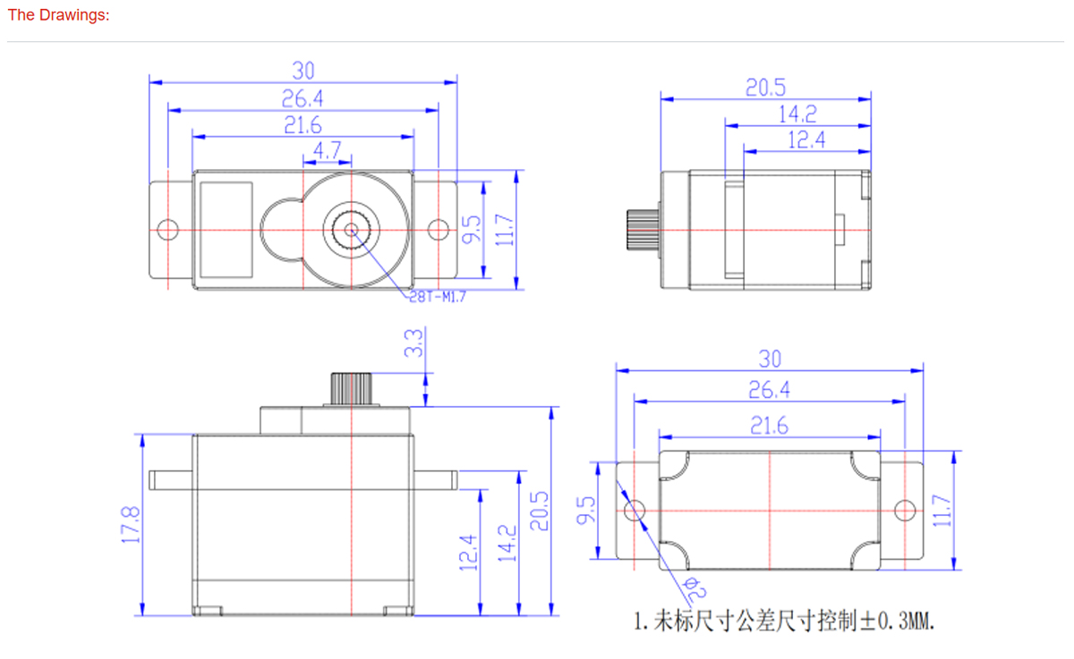 No Load Speed: 0.059sec/60°(170RPM)@6V