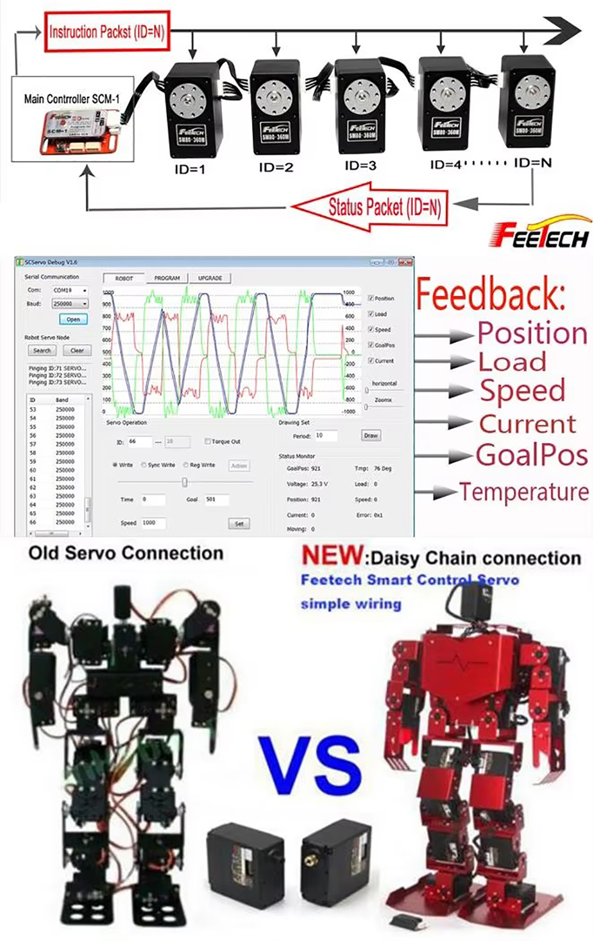 Feetech SCS15 High Torque 6V 15kg Servo Digital Robot Servo 10cm 3 Pin Cable For SCS Smart Control RC Servo