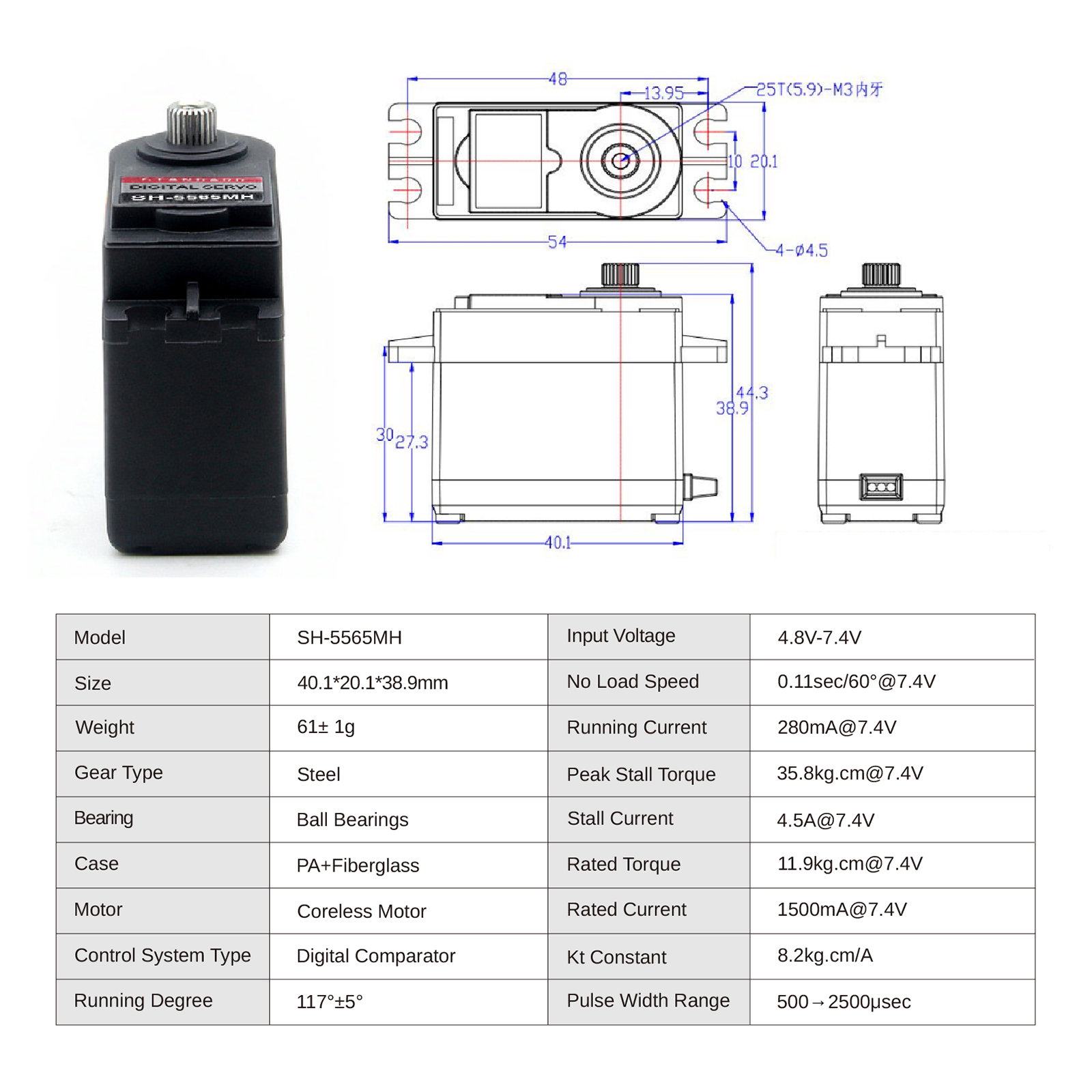 Feetech SH-5565MH 7.4V 35.8kg Metal Gear Coreless Motor Digital Servo for RC Car Airplane Boat
