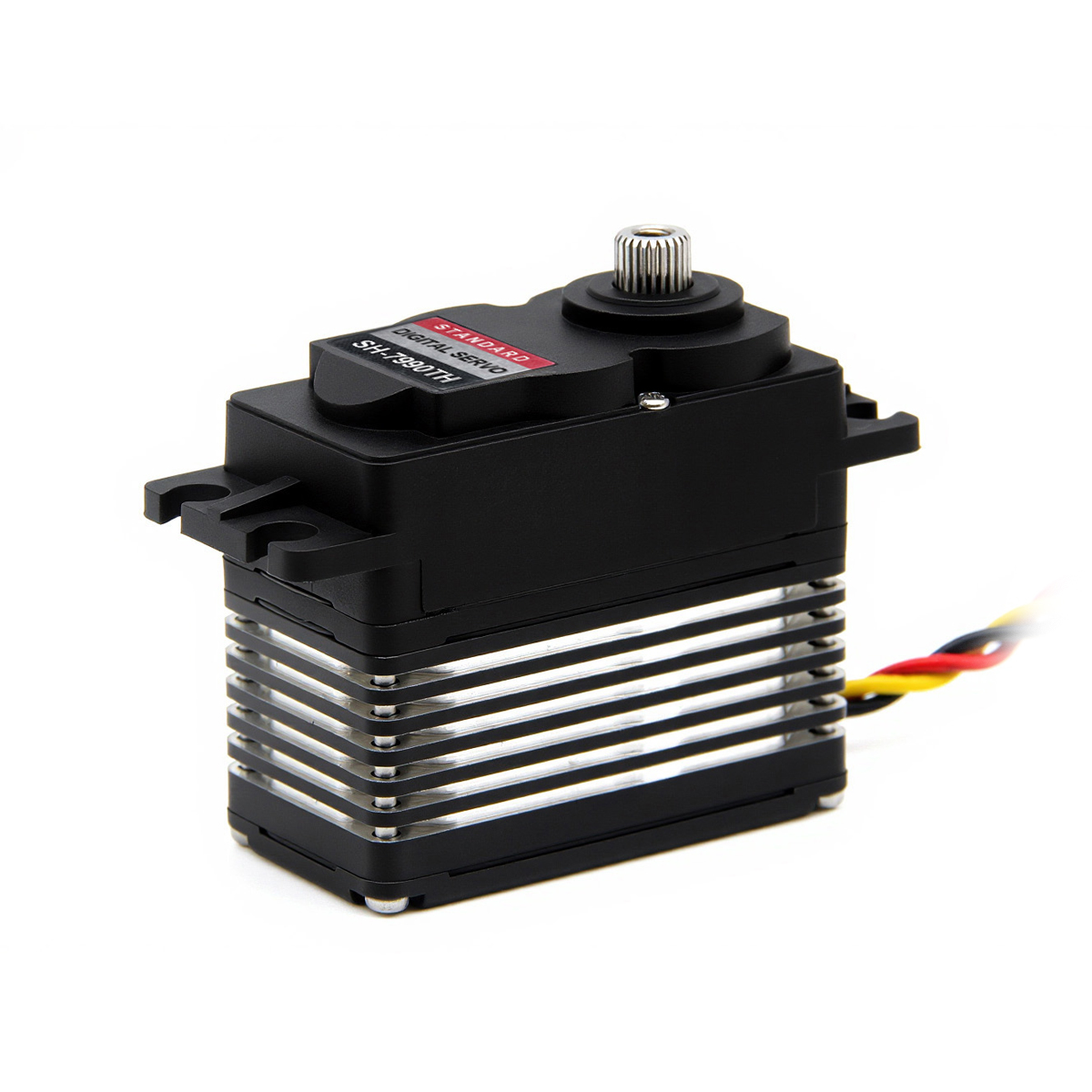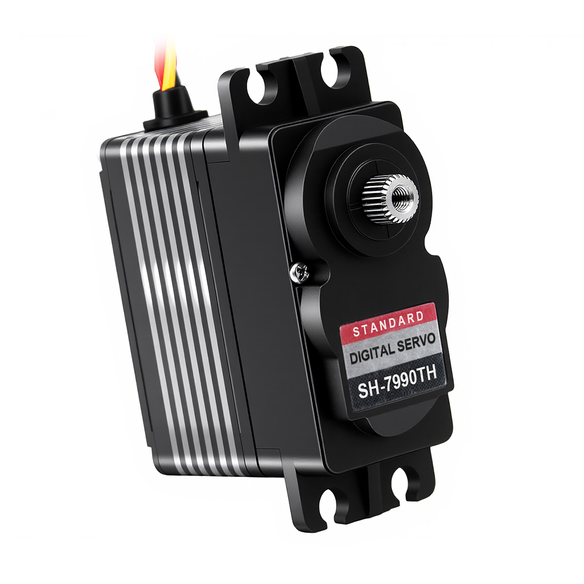 The SH-7990TH digital servo is a high-performance factory alternative to the HS-7980TH and HS-7990TH models, engineered for heavy-duty applications requiring high torque, stable voltage compatibility, and durable titanium gears. Equipped with a coreless motor and 2BB bearings, it delivers fast response speeds, reliable load-bearing capacity, and long operational life—ideal for industrial automation, robotics, large RC models, and agricultural machinery. Its compact design and JR connector compatibility ensure easy integration into existing systems.