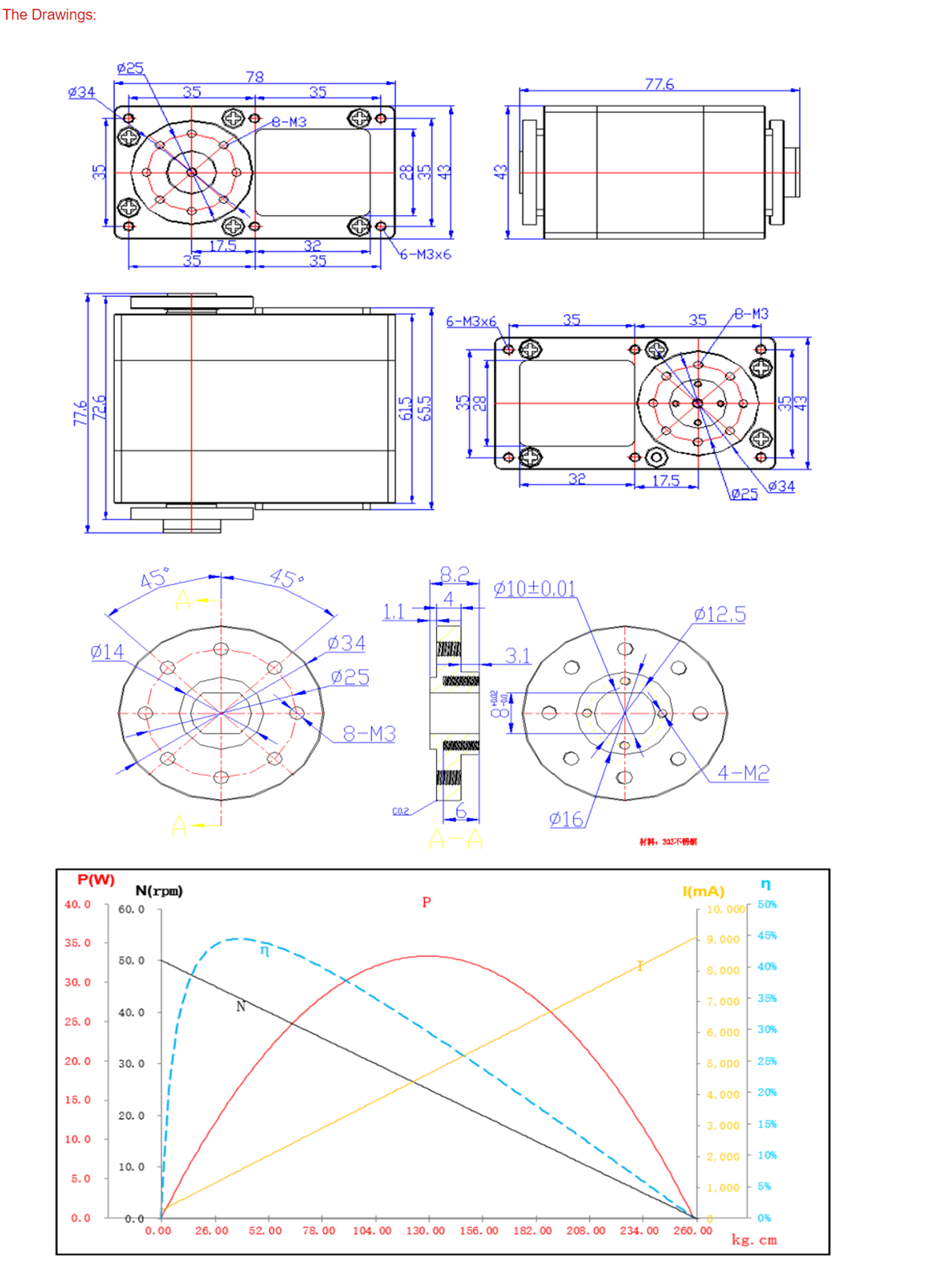 SM260BL is 24V serial port smart bus servo,all aluminum alloy shell is adopted、brushless motor、steel gearbox、Feetech self researched and developed RS485 control board,12 bit high precision magnetic coding sensor,external connec stainless steel main servo horn. The stall torque is 260kg.cm,can achieve 0-360 degrees any angle controllable,multi-turn continuous operation mode,it can realize the function of setting the middle point with one key,acceleration slow start and slow stop,can feedback position、speed、voltage、current、temperature、load parameters,thus, overload and over-current protection can be realized. It is suitable for application in industrial equipment, robot and other industries.