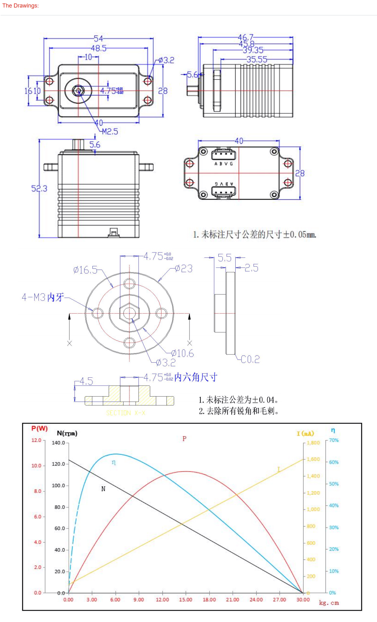 No Load Speed: 0.081sec/60°(124RPM)@24V