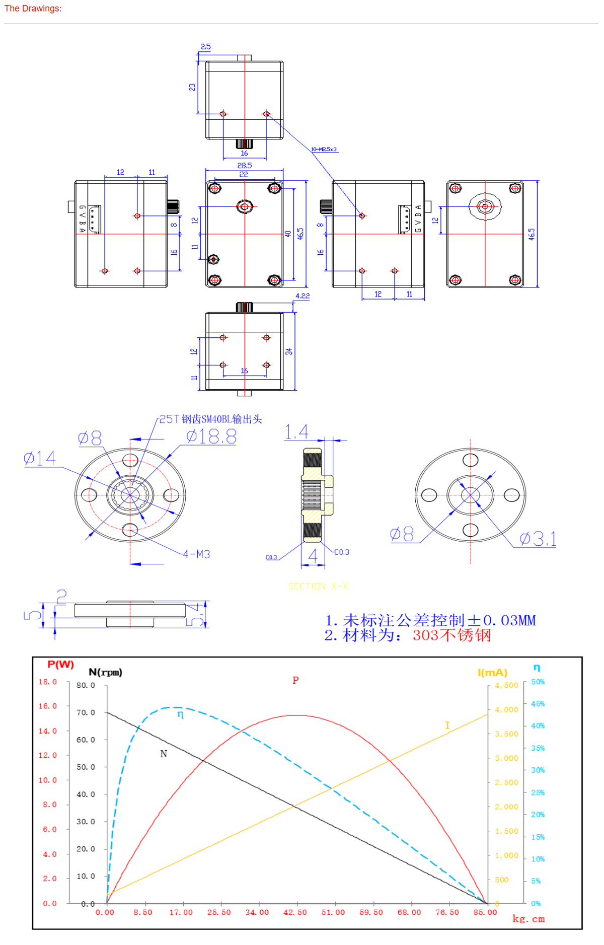 No Load Speed: 0.142sec/60°(70RPM)@24V