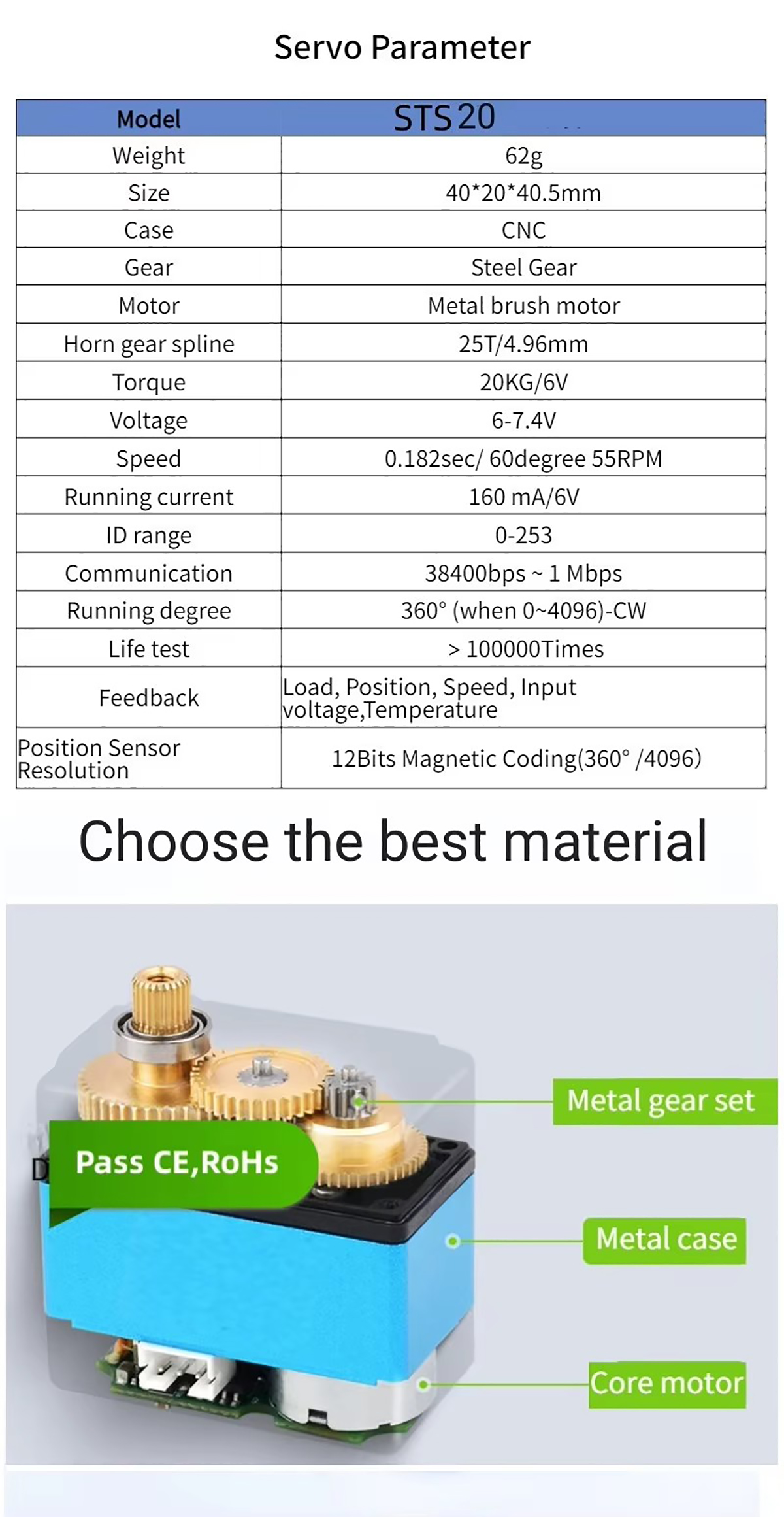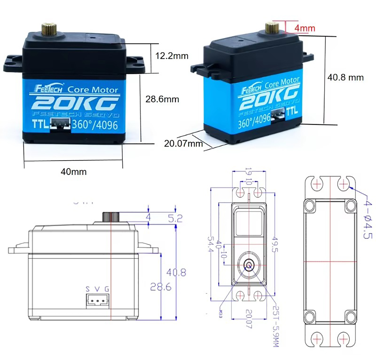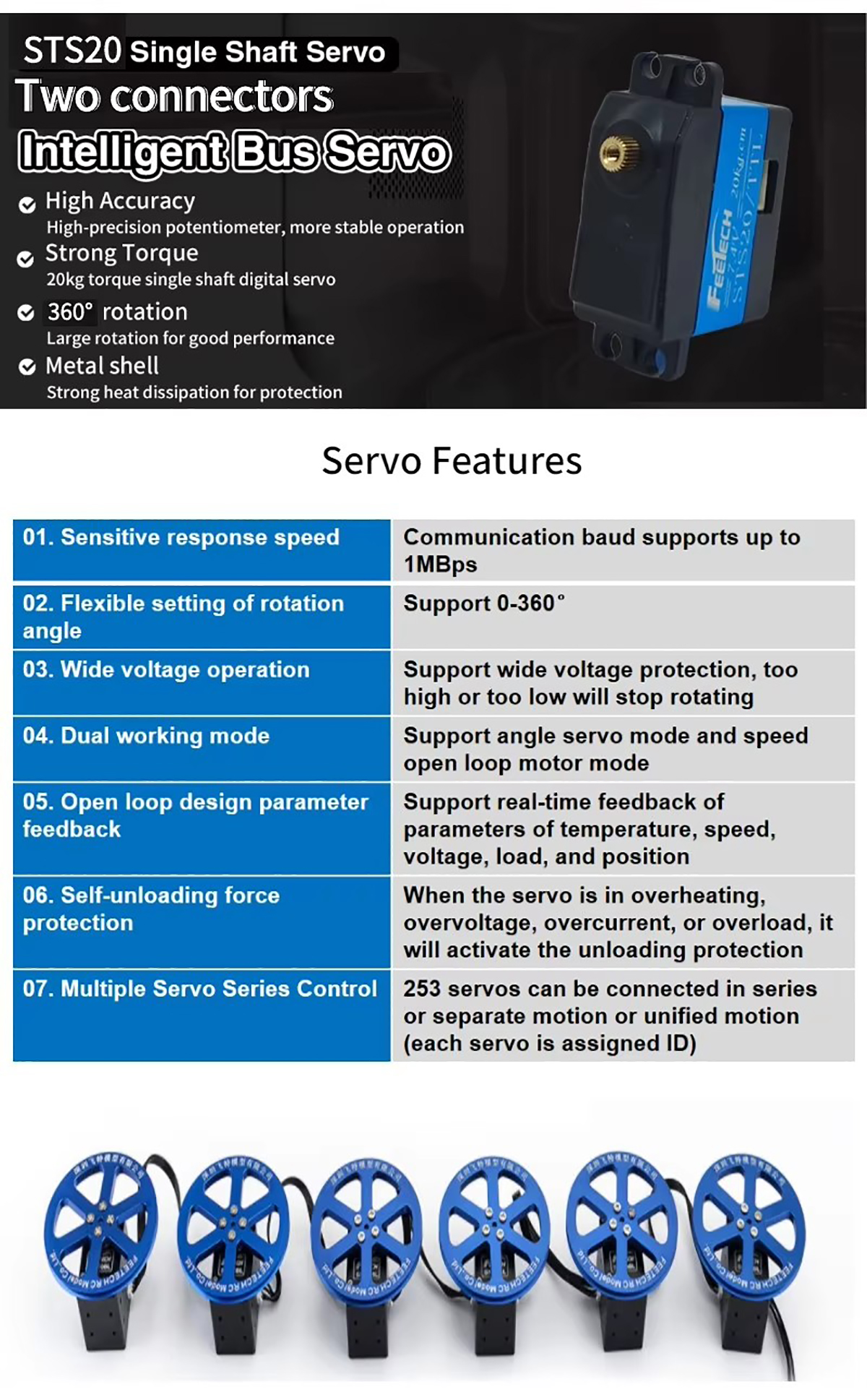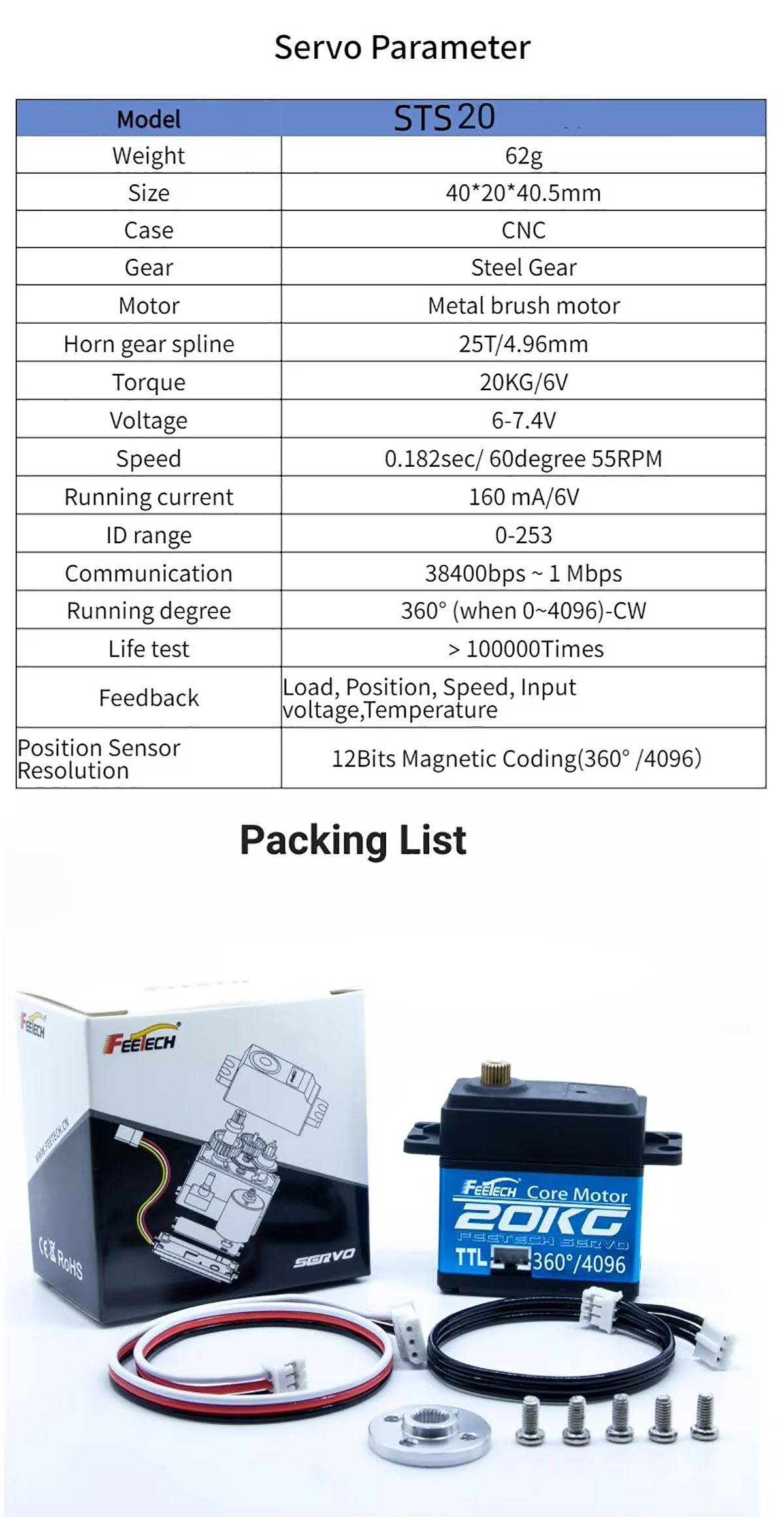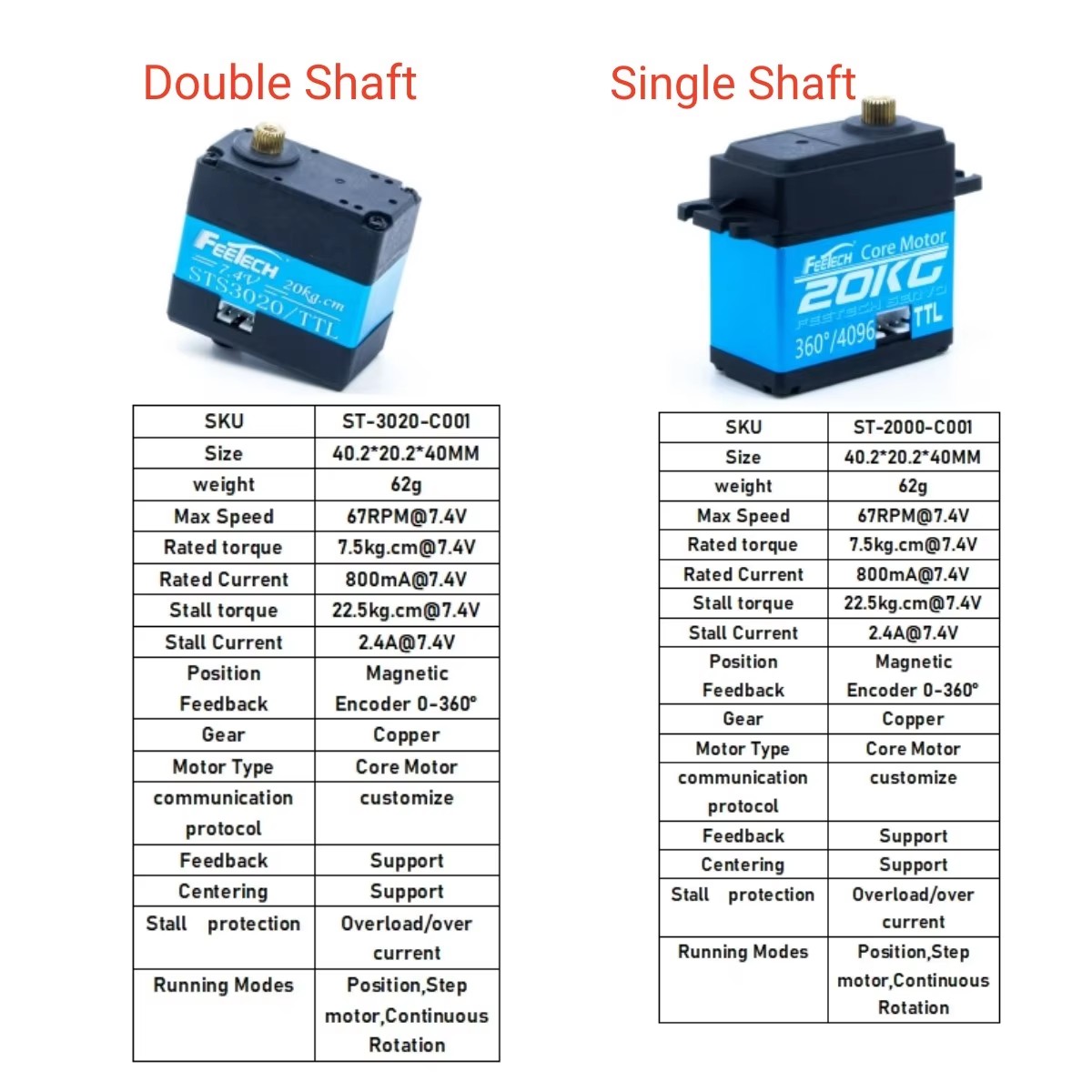 Feetech STS20 7.4V 20kg Copper Gear 360 Degree Magnetic Encoder Serial Bus Servo for Robotic