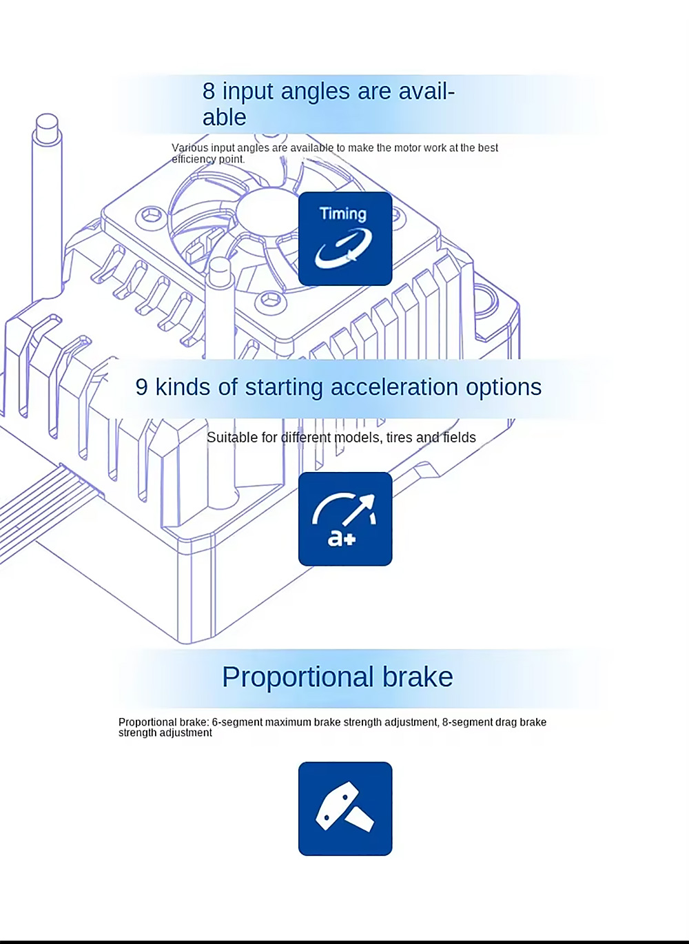 Supported motor types: Non-inductive brushless and inductive brushless motors