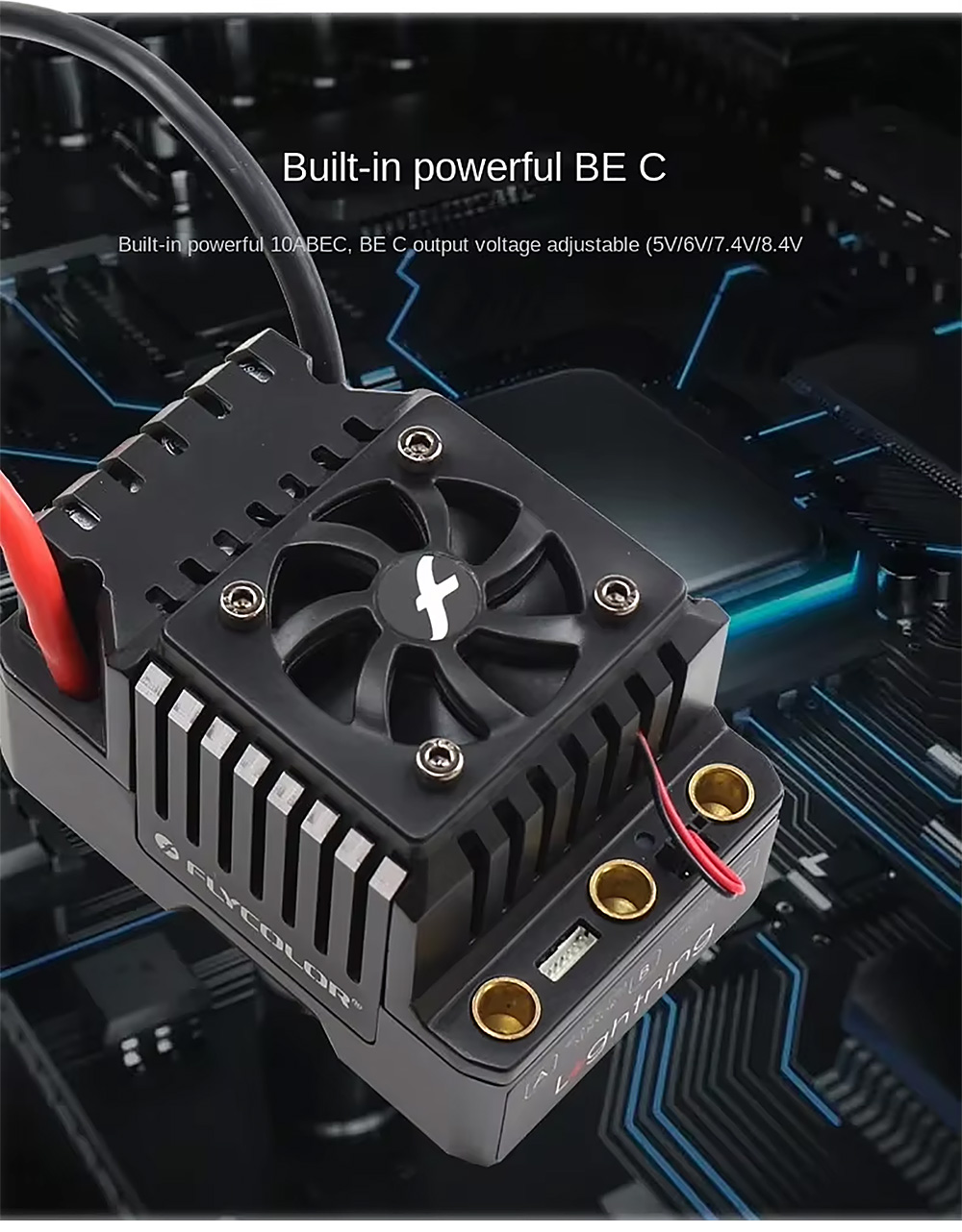BEC output: Switch voltage stabilization; 8.4V/7.4V/6V/5V 10A;