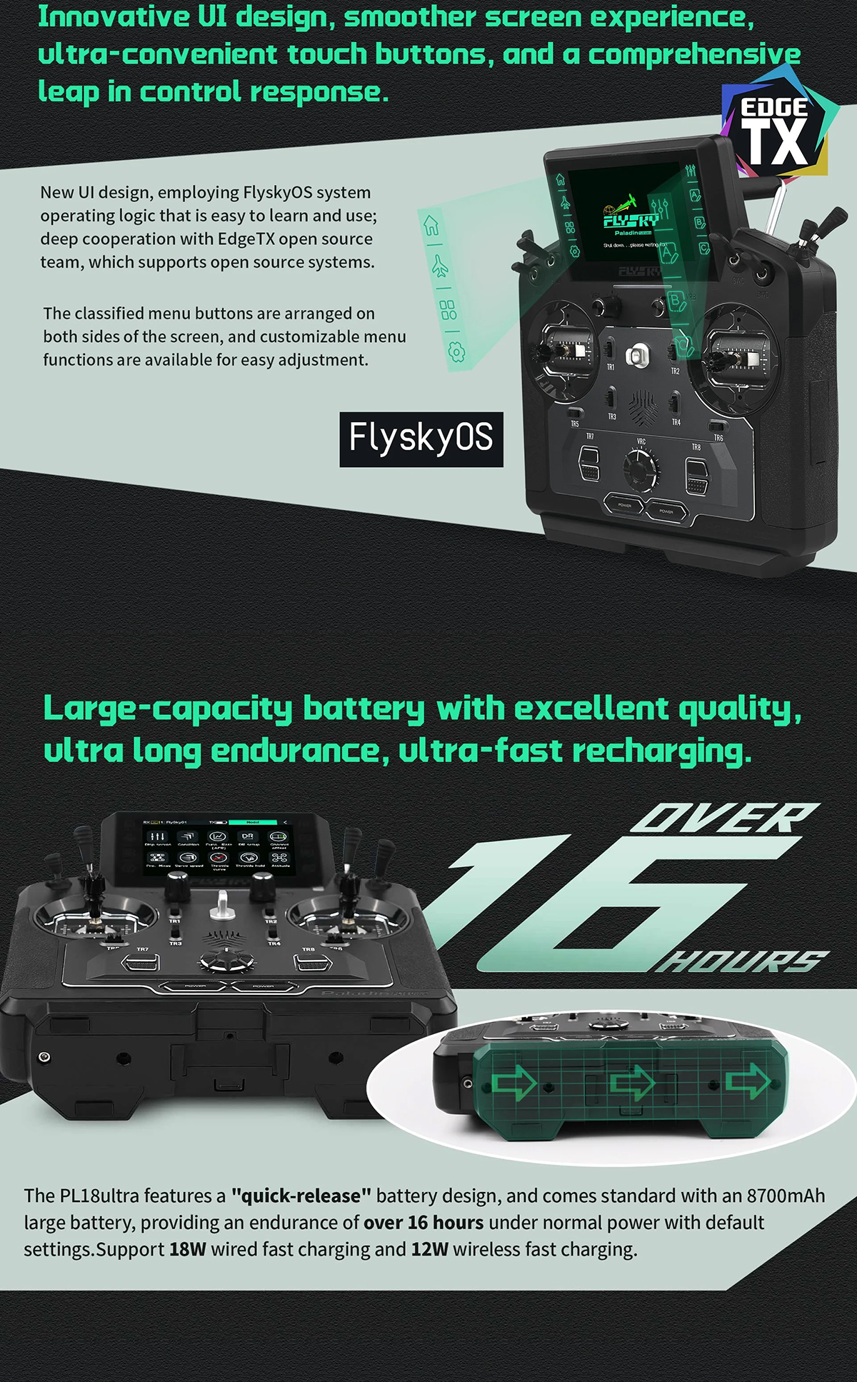 Flysky Paladin PL18 Ultra Radio Transmitter 3.5 Inch 18 Channel AFHDS 3 with FTr8B Receiver for RC Drone Airplane