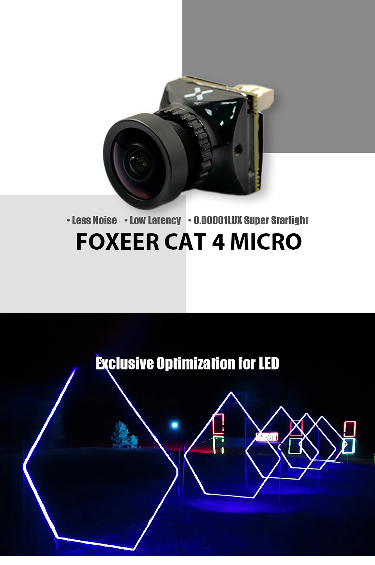 Foxeer Cat 4 Micro 1200TVL Starlight FPV Camera 1/3″ CMOS Sensor 4:3/16:9 Switchable Night Flight Camera for FPV Drones