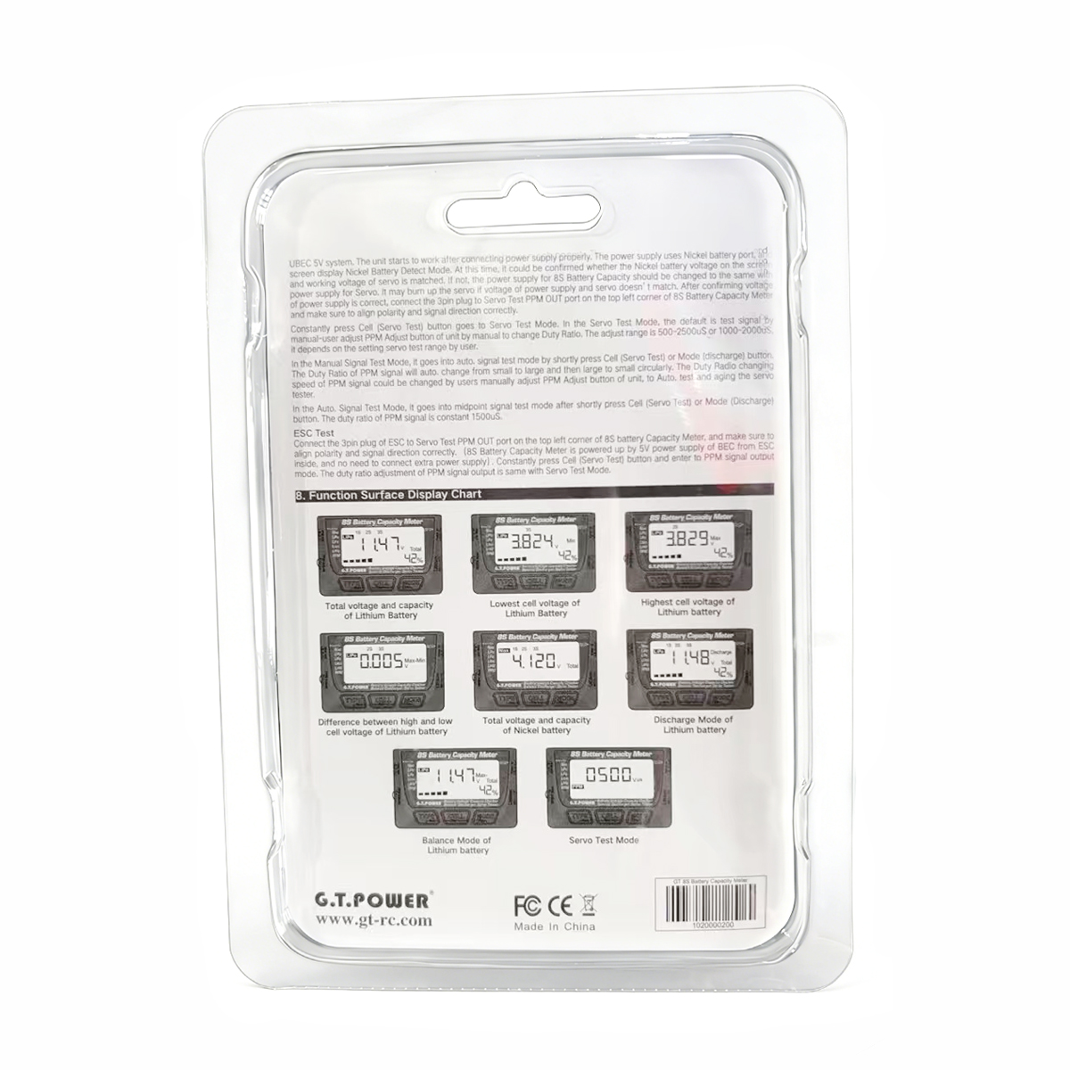 GT Power 1S-8S Battery Capacity Meter Lipo Battery Monitor Multi-function Battery Power Tester Voltage Detection Tools
