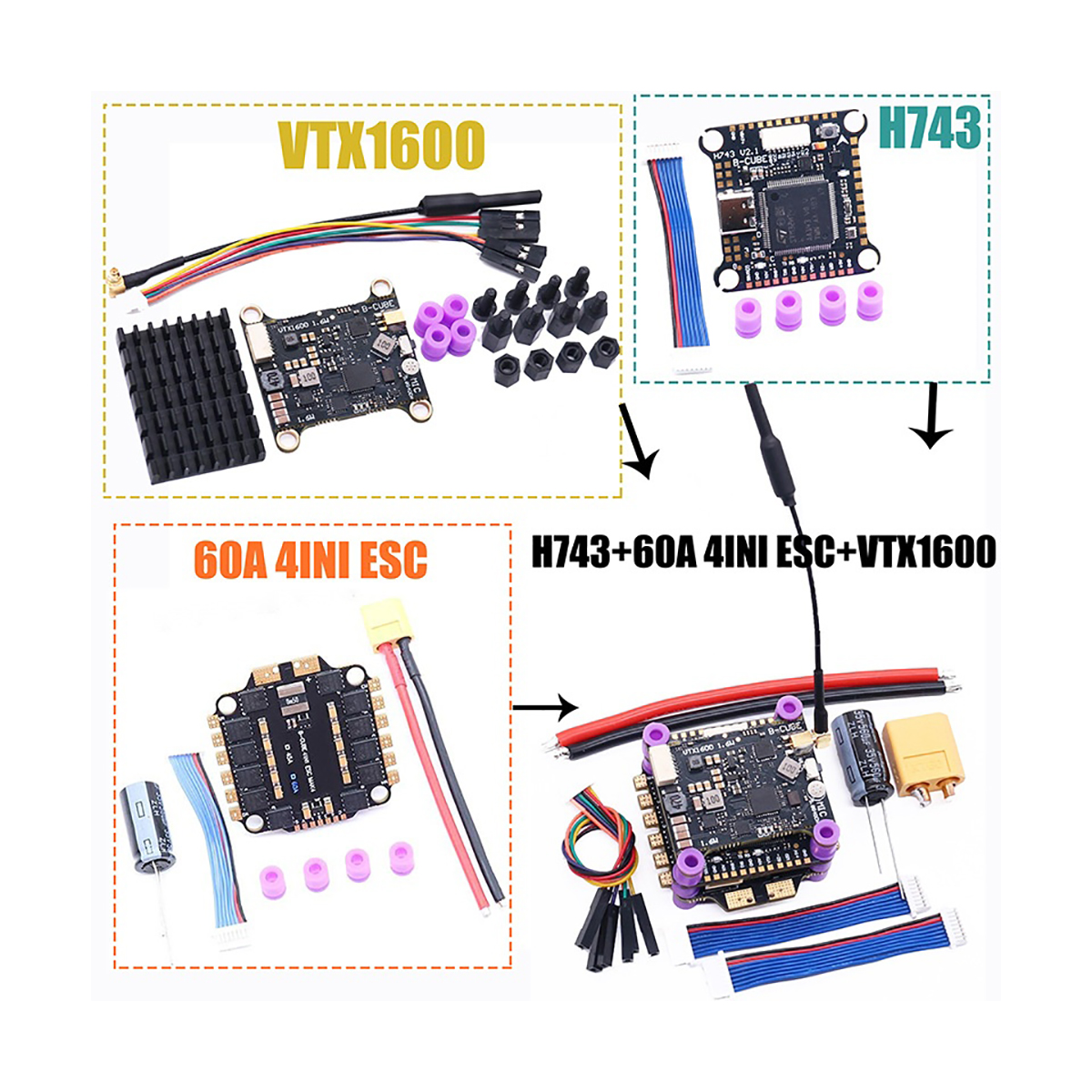 H743 60A Stack H743 Flight Control 60A 4in1 ESC VTX1600 Video Transmitter for RC FPV Drone