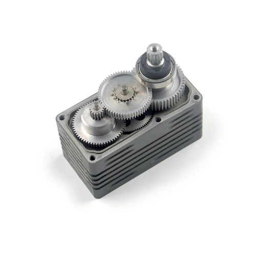 The shell is made of 7075T6 aluminum alloy CNC densely and is hard anodized to ensure its strength and corrosion resistance. The internal gears are made of German imported SUS416 stainless steel and are heat treated. After the double teeth are riveted, they are strengthened by laser welding to ensure the reliability under high stress conditions. The motor in the steering gear adopts a special brushed motor, retains the magnetic ring to ensure its working efficiency, and strengthens its heat dissipation performance to ensure the reliability of long-term work and locked-rotor. The front and rear double ball bearings, the highest domestic quality The commutator, imported carbon brushes, Kawasaki silicon steel sheet and Yueli enameled wire are all used to ensure the performance and quality of this steering gear.