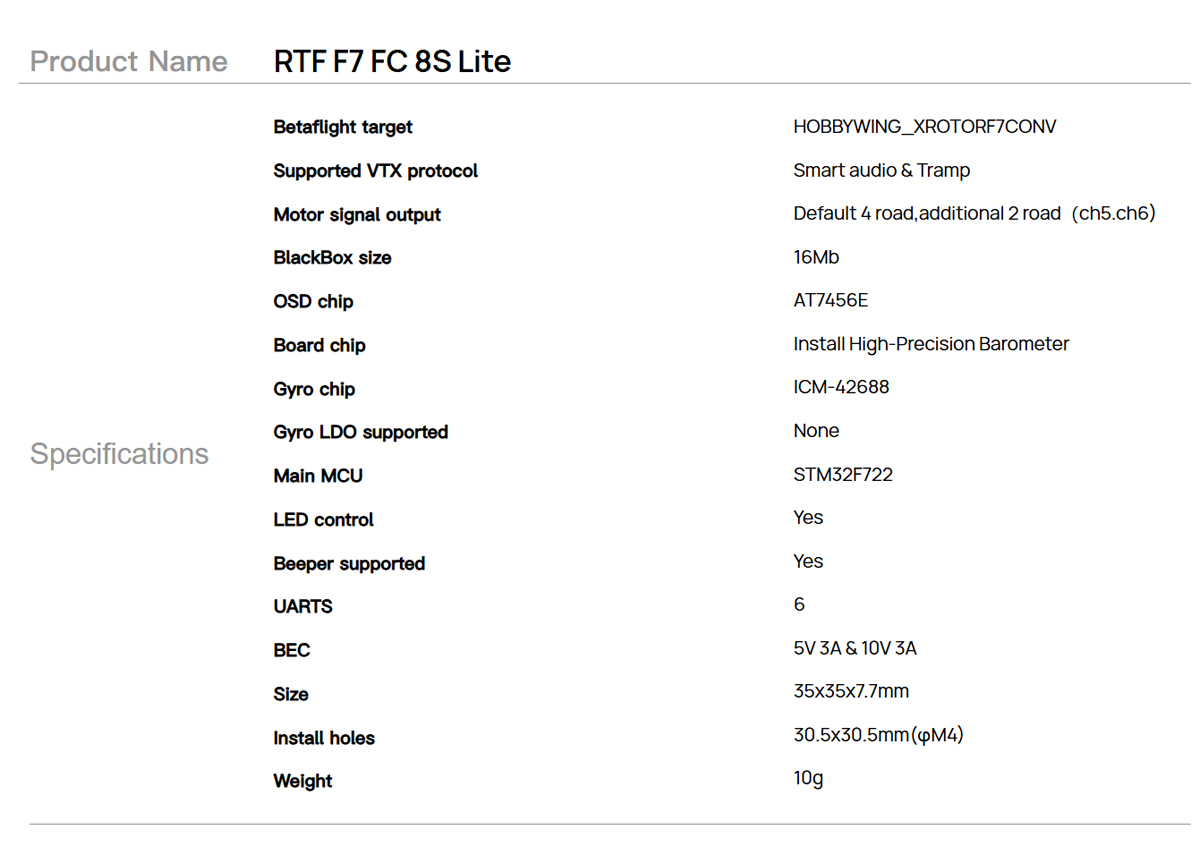 Model: RTF F7 FC 8S Lite