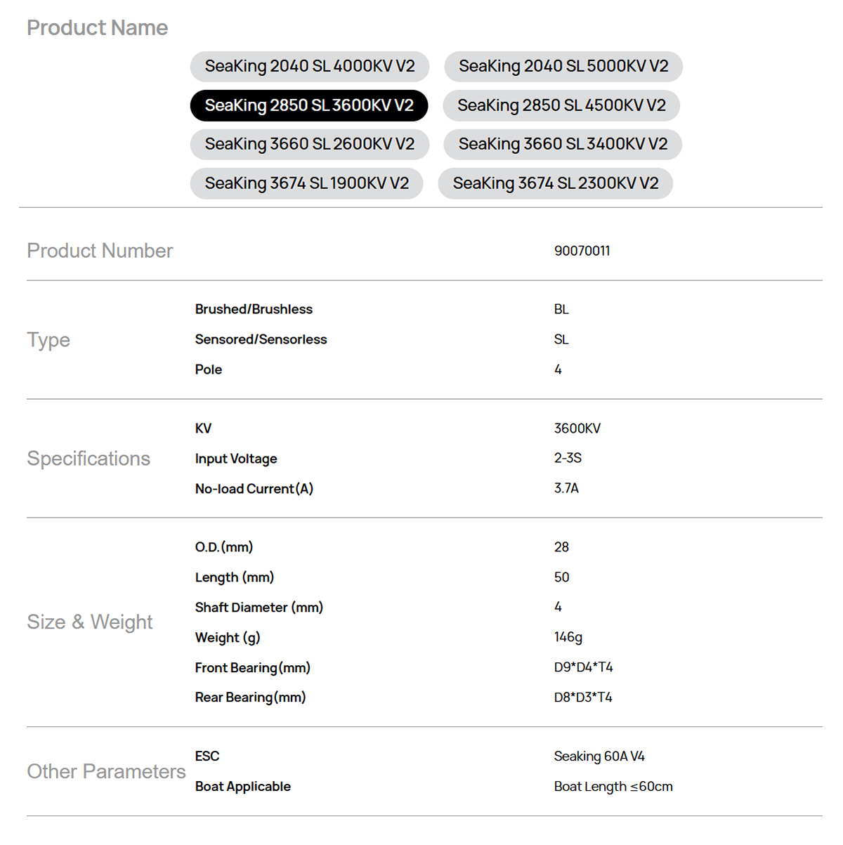 Model: SeaKing 2850 SL 3600KV V2